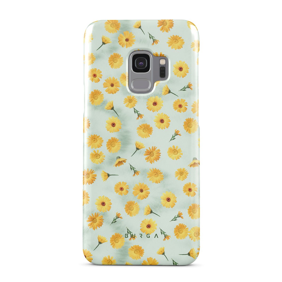 In our Sanctuary of Love Samsung Galaxy S9 phone case, a soft mint marble meets a glowing pattern of yellow flowers that will surely add a splash of energy to your style while protecting your phone from dangerous falls.