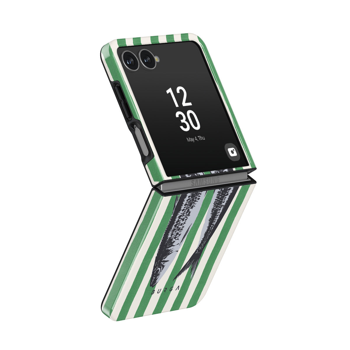 It’s like you’re riding a wave on a flamingo float, heading straight for a beach bar. This Samsung Galaxy Z Flip 7 Case phone case design is sardines, stripes, and sunshine in the same breath—chaotic, cool, and ready to drop that vacation vibe. Can you smell the sea breeze yet?
