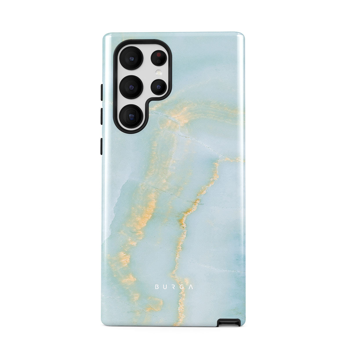 Samsung Galaxy S22 Ultra phone case design. The delicate marble pattern that combines with pretty pastel colors adds a soft touch to your device while protecting it from falls.
