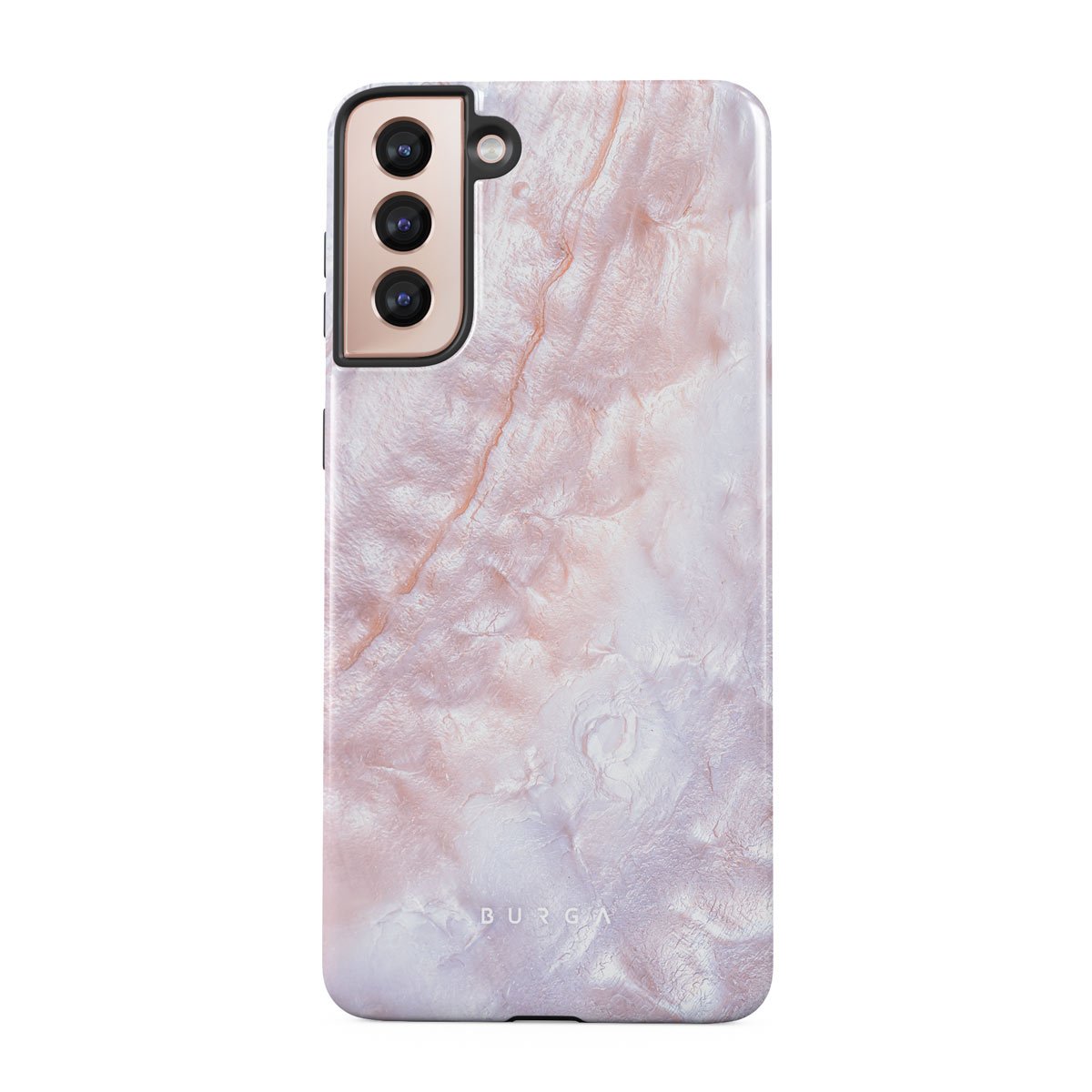 Have you wondered what the crown of a Mermaid would look like? Would it shine through the waters to lure in the sailors, or would it be as subtle as the pretty pattern found on a pastel seashell? Have this subtle sea shell inspired Samsung Galaxy S21 Plus phone case in your collection and protect your phone in style.