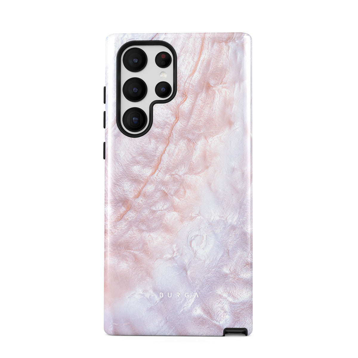 Have you wondered what the crown of a Mermaid would look like? Would it shine through the waters to lure in the sailors, or would it be as subtle as the pretty pattern found on a pastel seashell? Have this subtle sea shell inspired Samsung Galaxy S22 Ultra phone case in your collection and protect your phone in style.