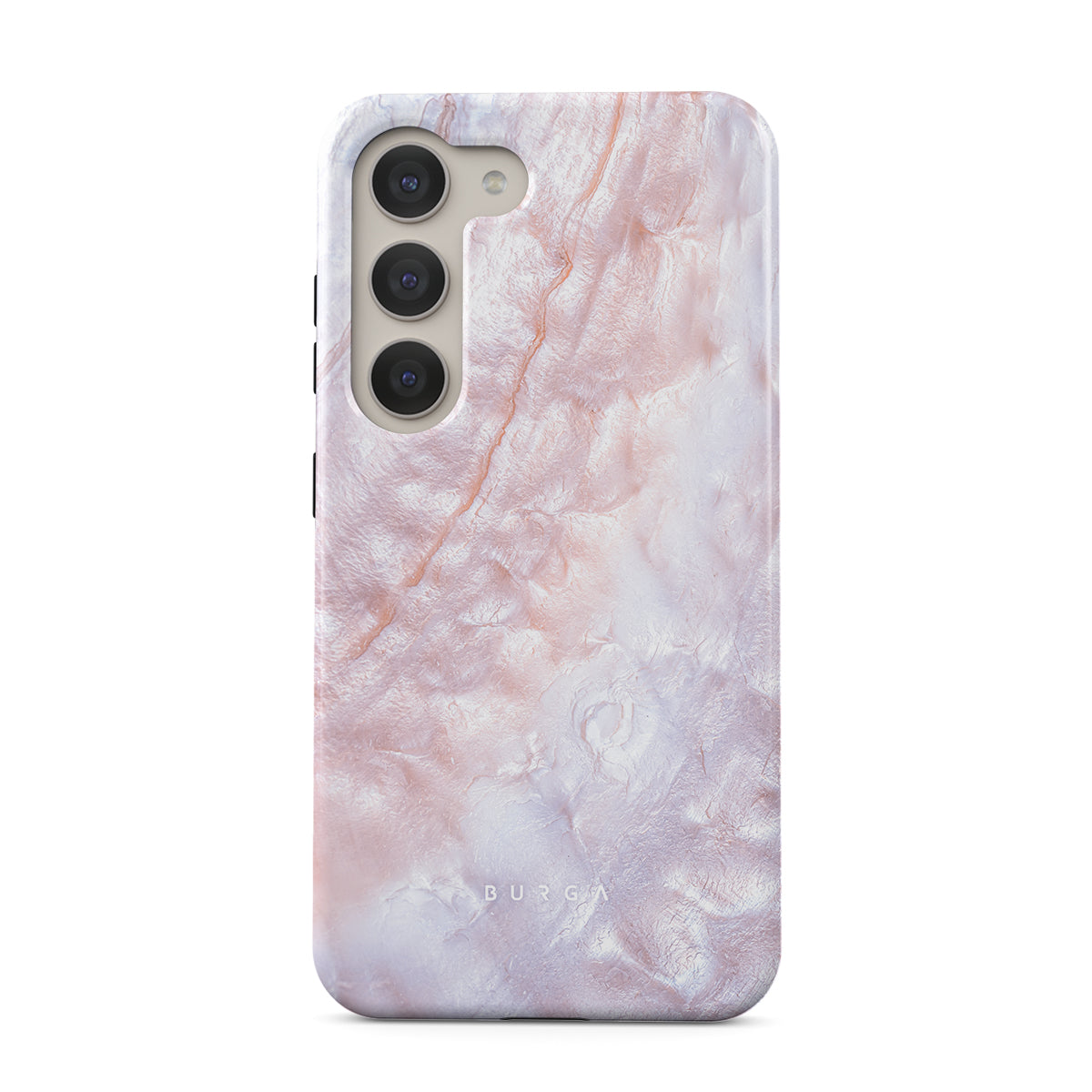 Have you wondered what the crown of a Mermaid would look like? Would it shine through the waters to lure in the sailors, or would it be as subtle as the pretty pattern found on a pastel seashell? Have this subtle sea shell inspired Samsung Galaxy S23 phone case in your collection and protect your phone in style.