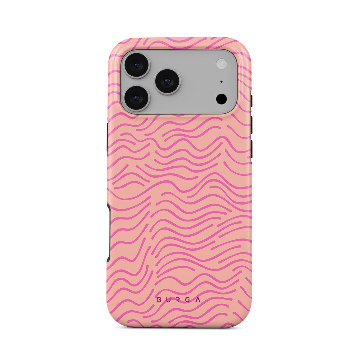 Everyone has their hideaway place for moments of relaxation. We have combined the feel it gives us in our Secret Spot iPhone 17 Pro Max phone case design. The soft pink wavy pattern casually flows through the pastel pink background, creating very well-thought-out chaos. Bring peace of mind with this cute pink case, which will keep your phone safe in its little hideaway!