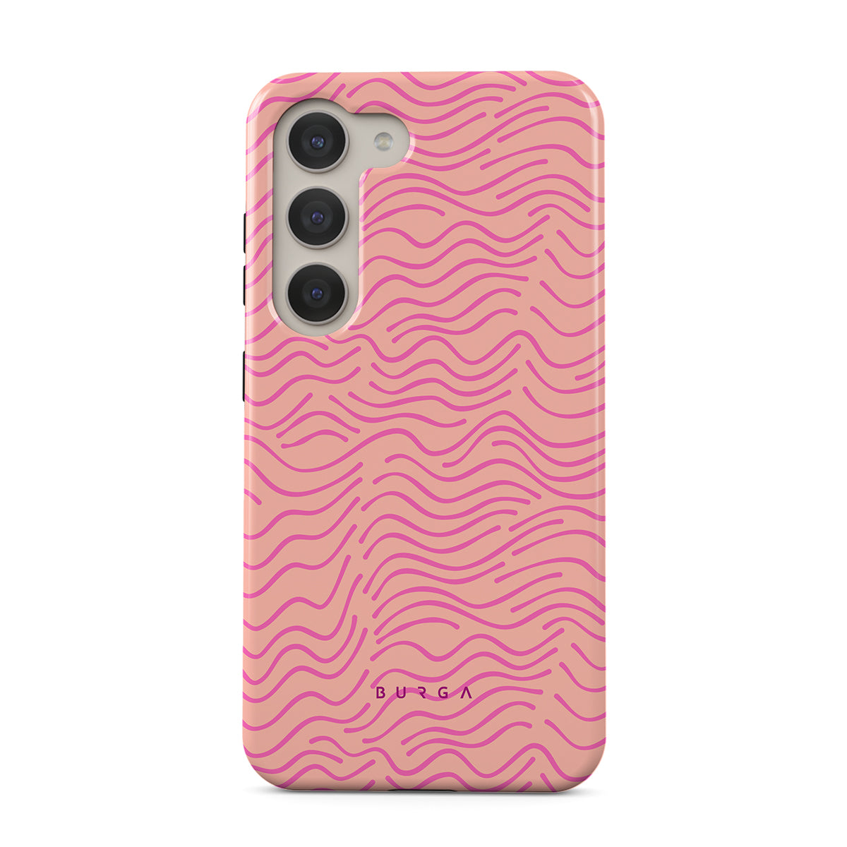 Everyone has their hideaway place for moments of relaxation. We have combined the feel it gives us in our Secret Spot Samsung Galaxy S23 phone case design. The soft pink wavy pattern casually flows through the pastel pink background, creating very well-thought-out chaos. Bring peace of mind with this cute pink case, which will keep your phone safe in its little hideaway!