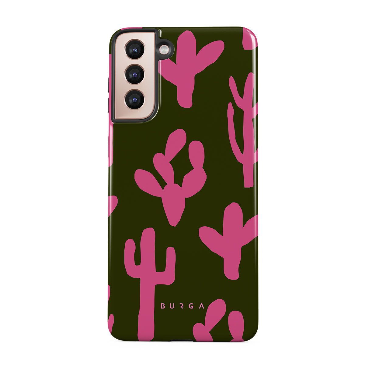 Step into a desert oasis at dusk, where vibrant pink cactuses bloom against a mysterious dark background. Serenade is a poetic fusion of resilience and beauty, turning your Samsung Galaxy S21 Plus phone case into a sanctuary of tranquility amidst the chaos of everyday life.