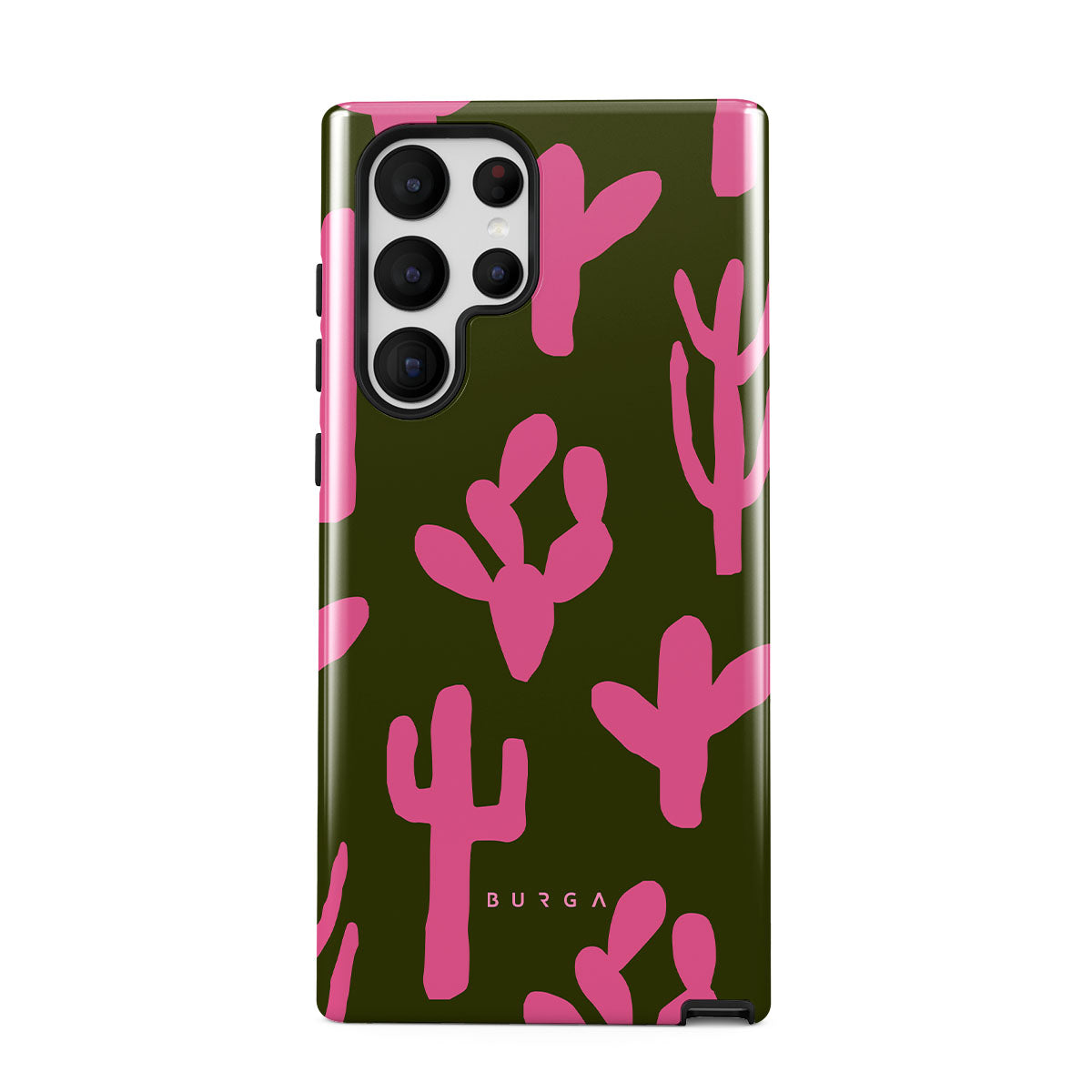 Step into a desert oasis at dusk, where vibrant pink cactuses bloom against a mysterious dark background. Serenade is a poetic fusion of resilience and beauty, turning your Samsung Galaxy S22 Ultra phone case into a sanctuary of tranquility amidst the chaos of everyday life.