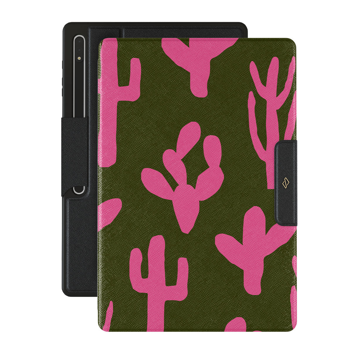 Step into a desert oasis at dusk, where vibrant pink cactuses bloom against a mysterious dark background. Serenade is a poetic fusion of resilience and beauty, turning your Samsung Galaxy Tab S10 Ultra folio case into a sanctuary of tranquility amidst the chaos of everyday life.