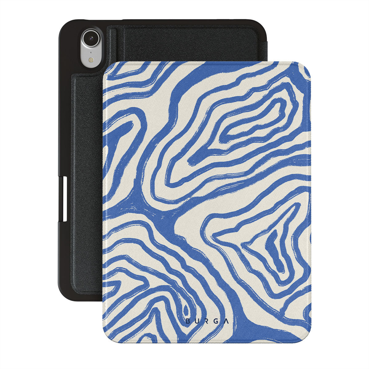 The Seven Seas iPad Mini 8.3 (A17 Pro/6th Gen) 2021 folio case is a perfect accessory for those who love the ocean and seek to carry a piece of its magic with them. The delicate swirls that dance in shades of oceanic blue inspire a sense of adventure. At the same time, they invite us to pause and appreciate the fluidity and serenity of the sea.