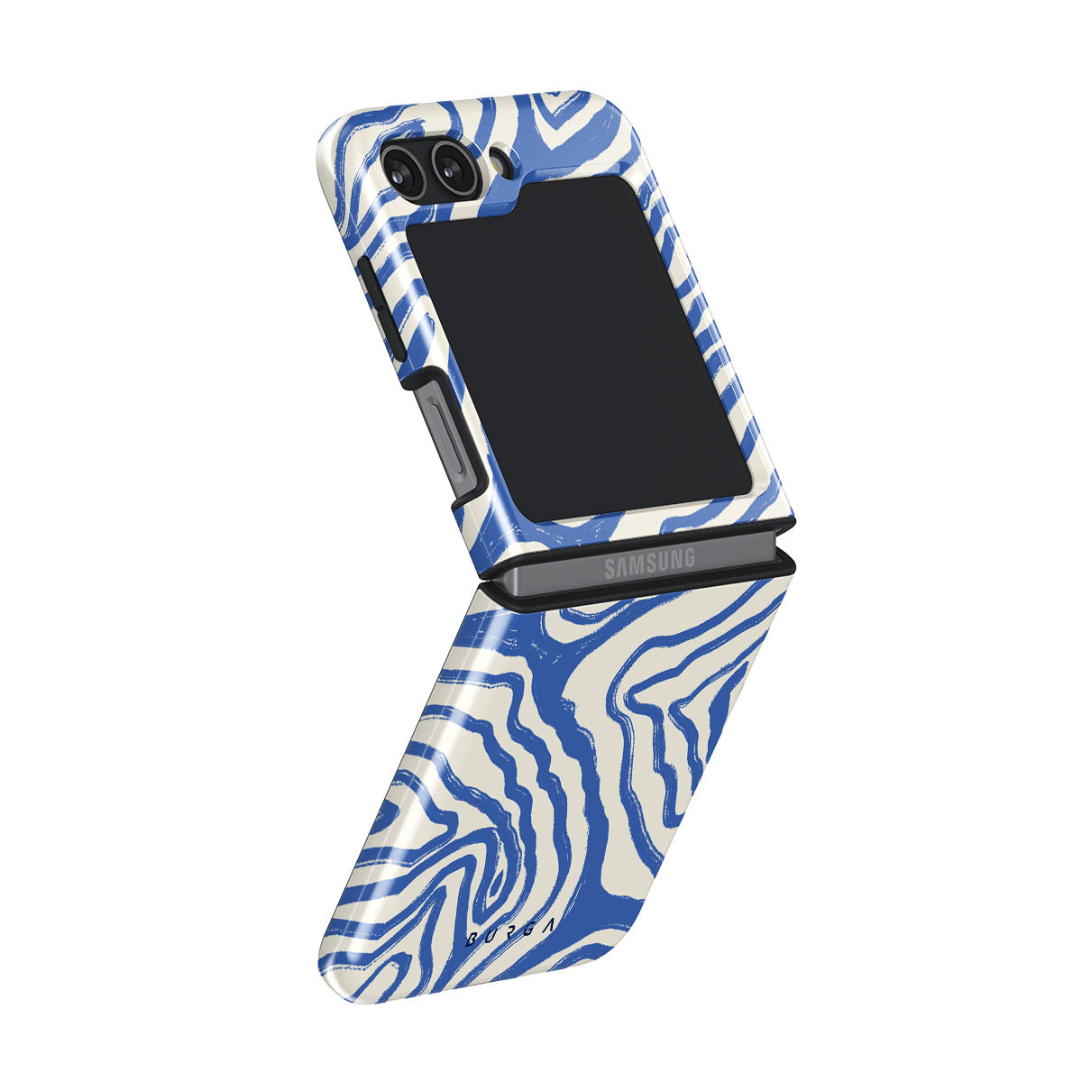 The Seven Seas Samsung Galaxy Z Flip 5 case is a perfect accessory for those who love the ocean and seek to carry a piece of its magic with them. The delicate swirls that dance in shades of oceanic blue inspire a sense of adventure. At the same time, they invite us to pause and appreciate the fluidity and serenity of the sea.