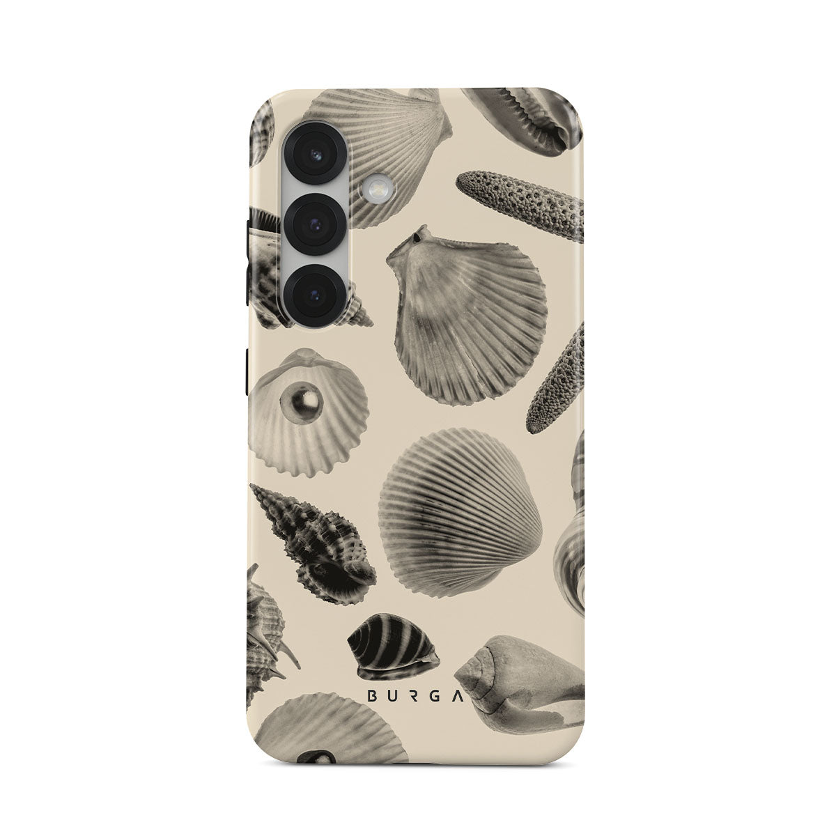 A sense of calm and serenity. Effortless elegance and natural beauty. A stunning mosaic pattern made up of carefully arranged seashells. A neutral palette that evokes memories of a day spent by the ocean. Our Shell Mosaic Samsung Galaxy S25 Plus case is the perfect accessory for any beach lover.