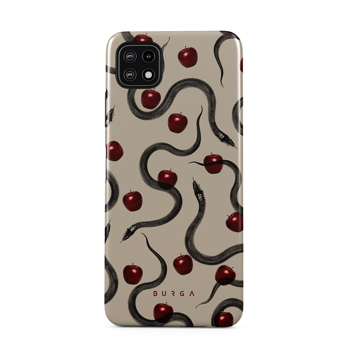 Lush and provocative, this Samsung Galaxy A22 5G phone case design pulls you into a story as old as time. The apples glow with promise, the serpents coil with strength. Sinful is a reminder that the sweetest temptations often hide the sharpest edges.