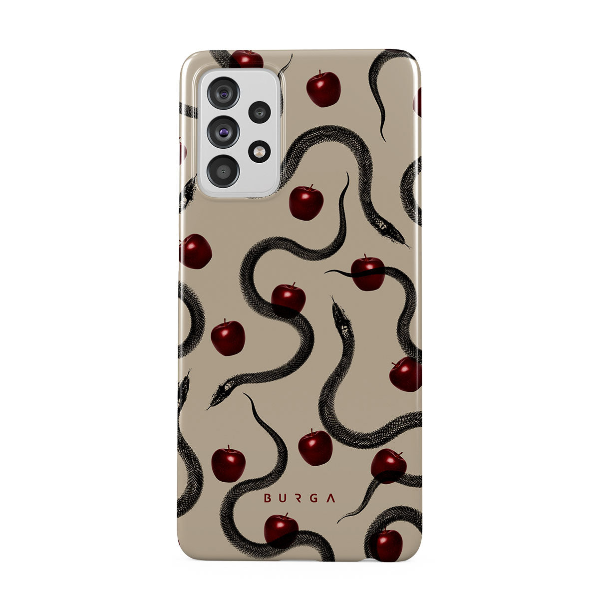 Lush and provocative, this Samsung Galaxy A72 4G / 5G phone case design pulls you into a story as old as time. The apples glow with promise, the serpents coil with strength. Sinful is a reminder that the sweetest temptations often hide the sharpest edges.