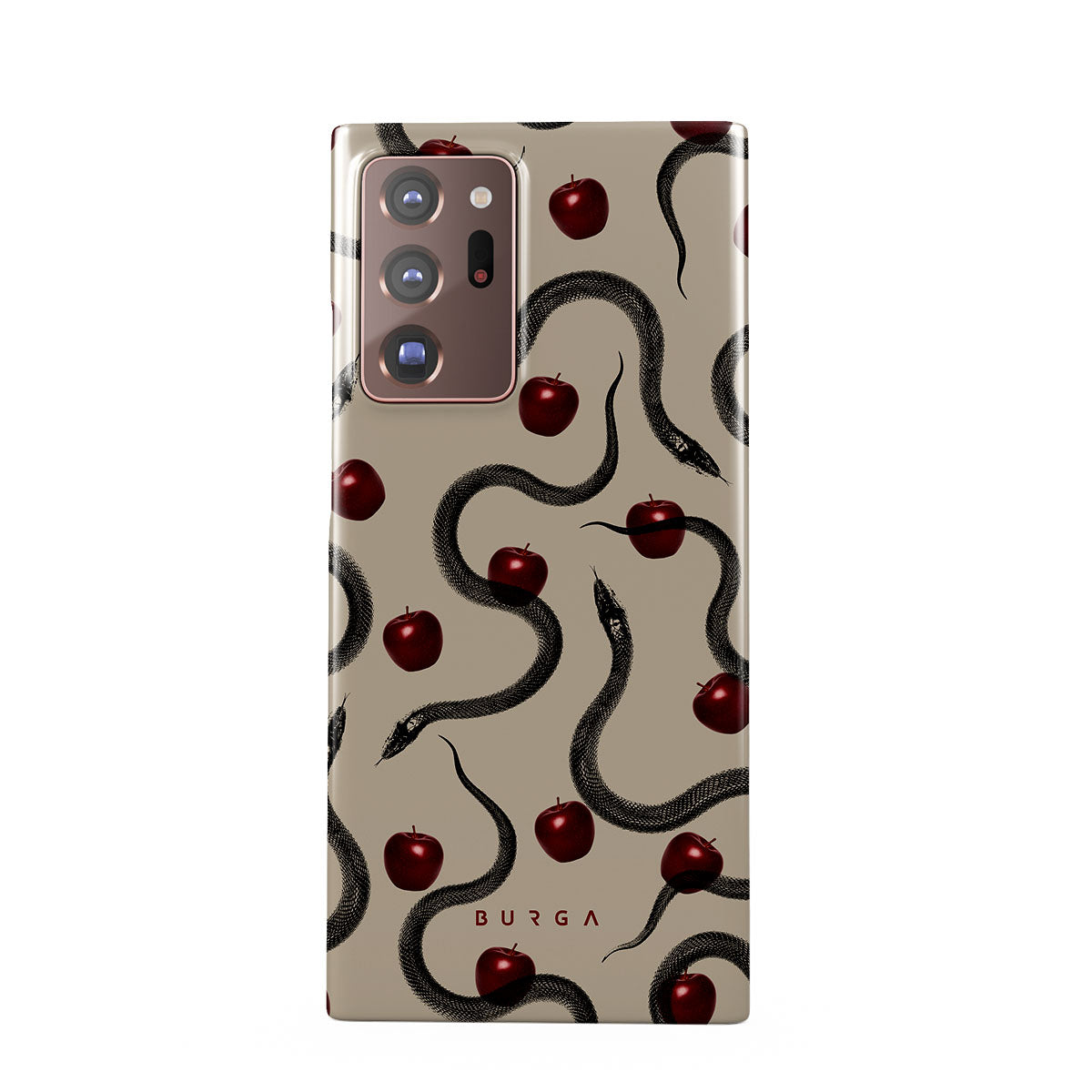 Lush and provocative, this Samsung Galaxy Note 20 Ultra 4G / 5G phone case design pulls you into a story as old as time. The apples glow with promise, the serpents coil with strength. Sinful is a reminder that the sweetest temptations often hide the sharpest edges.