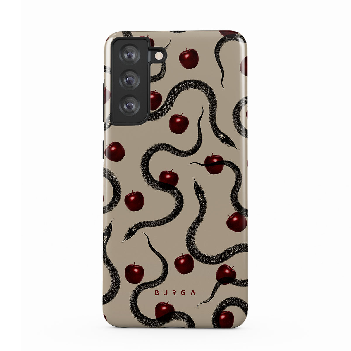 Lush and provocative, this Samsung Galaxy S21 FE phone case design pulls you into a story as old as time. The apples glow with promise, the serpents coil with strength. Sinful is a reminder that the sweetest temptations often hide the sharpest edges.
