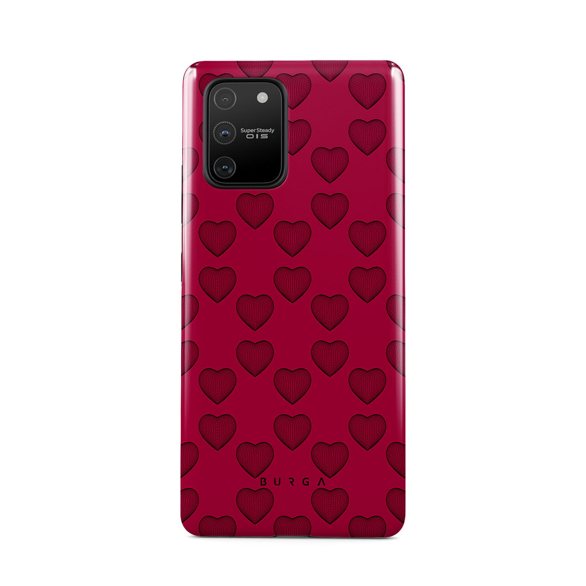 Forget roses. Show the world that you're confident, unapologetically yourself, and ready to take on the day. The vivid pink background is eye-catching and fun. The floating darker hearts add depth and sophistication. While serving as a gentle reminder to prioritize your own happiness, our Single Not Sorry Samsung Galaxy S10 Lite phone case will brighten up any outfit.