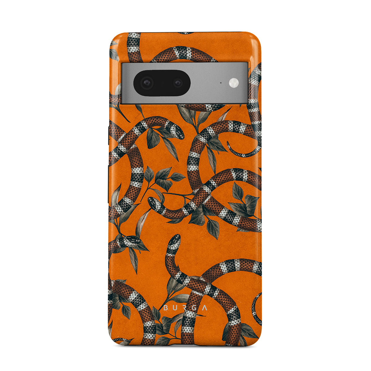 Take a bit of fierceness with yourself with our bright orange and dangerously beautiful Google Pixel 7 phone case with a snake pattern. This case is real eye candy for fashion lovers and just as needed for those who strive to keep their phones protected.