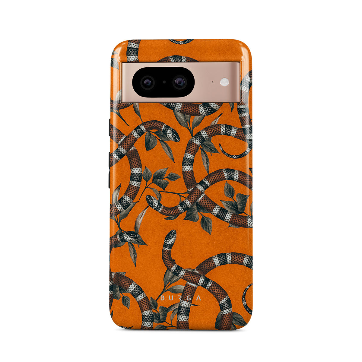 Take a bit of fierceness with yourself with our bright orange and dangerously beautiful Google Pixel 8 phone case with a snake pattern. This case is real eye candy for fashion lovers and just as needed for those who strive to keep their phones protected.