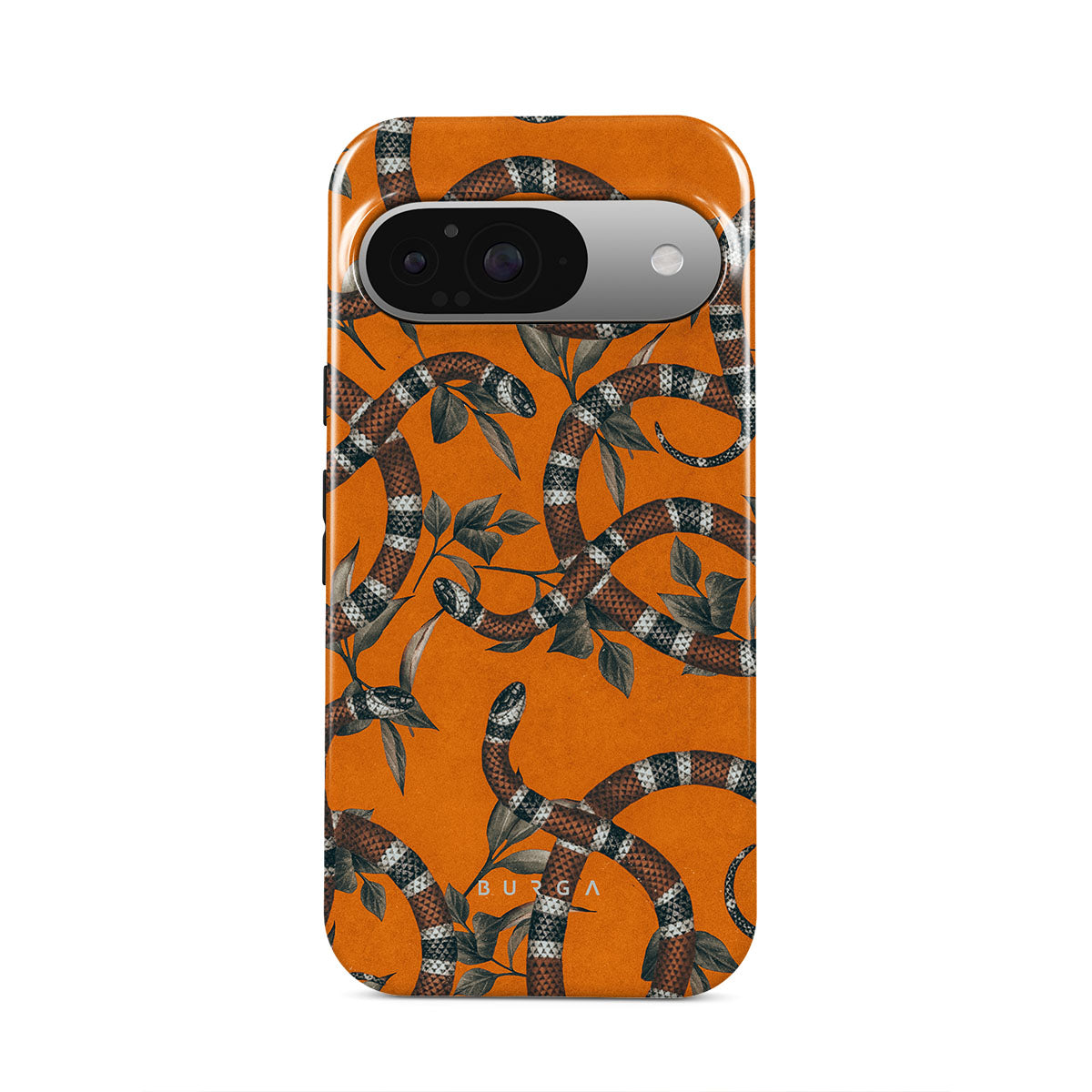 Take a bit of fierceness with yourself with our bright orange and dangerously beautiful Google Pixel 9 phone case with a snake pattern. This case is real eye candy for fashion lovers and just as needed for those who strive to keep their phones protected.