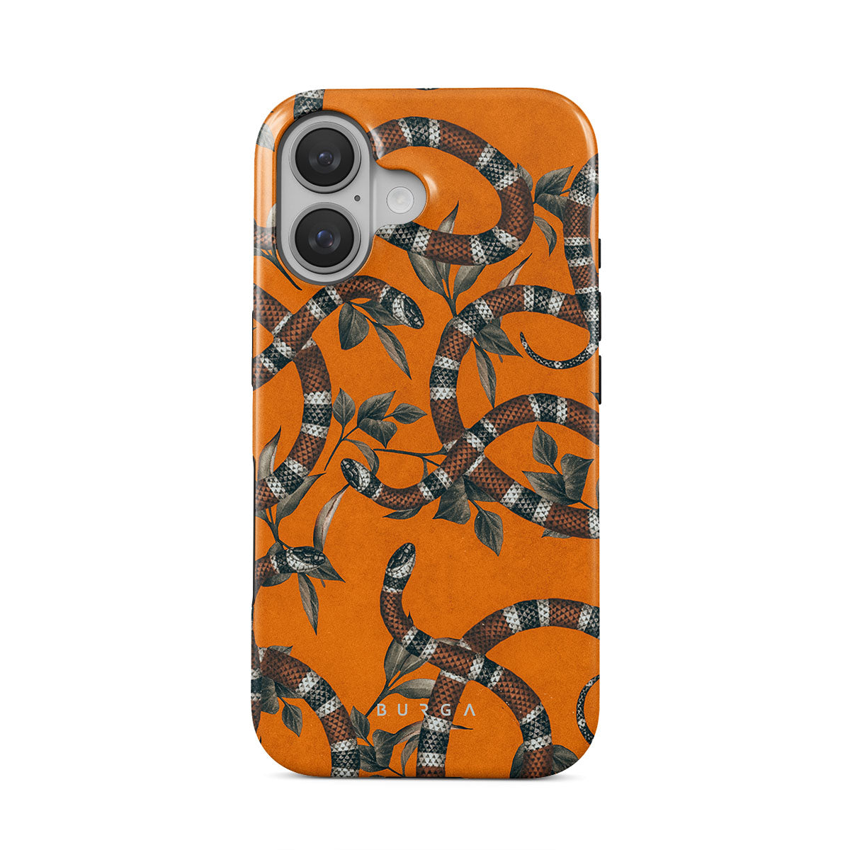 Take a bit of fierceness with yourself with our bright orange and dangerously beautiful iPhone 16 Plus phone case with a snake pattern. This case is real eye candy for fashion lovers and just as needed for those who strive to keep their phones protected.