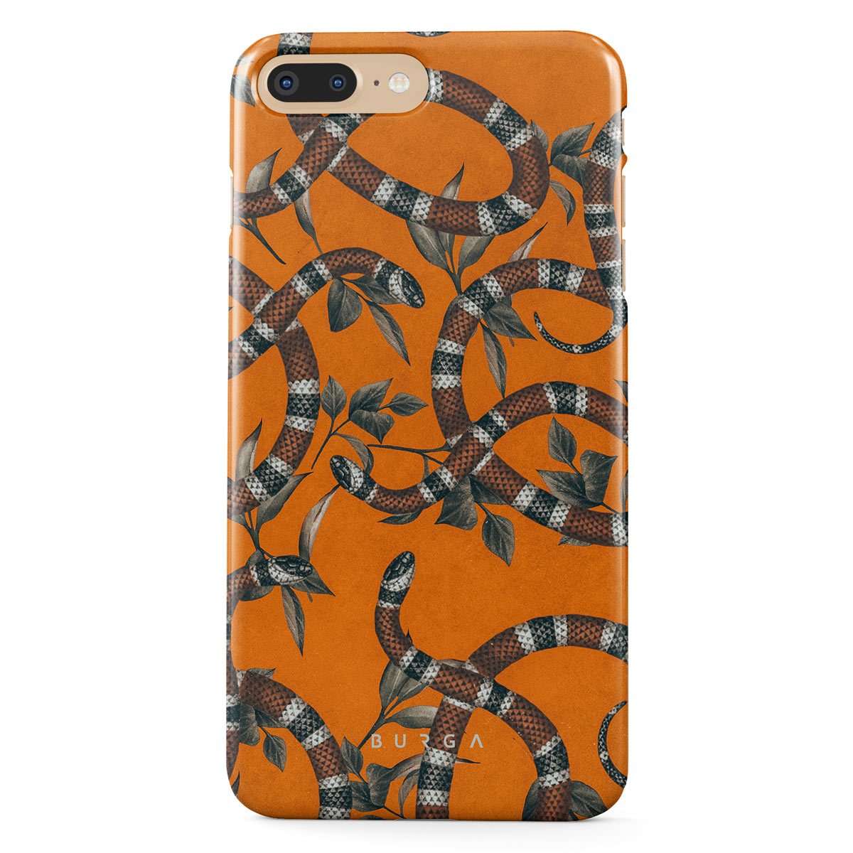 Take a bit of fierceness with yourself with our bright orange and dangerously beautiful iPhone 7 Plus 8 Plus phone case with a snake pattern. This case is real eye candy for fashion lovers and just as needed for those who strive to keep their phones protected.