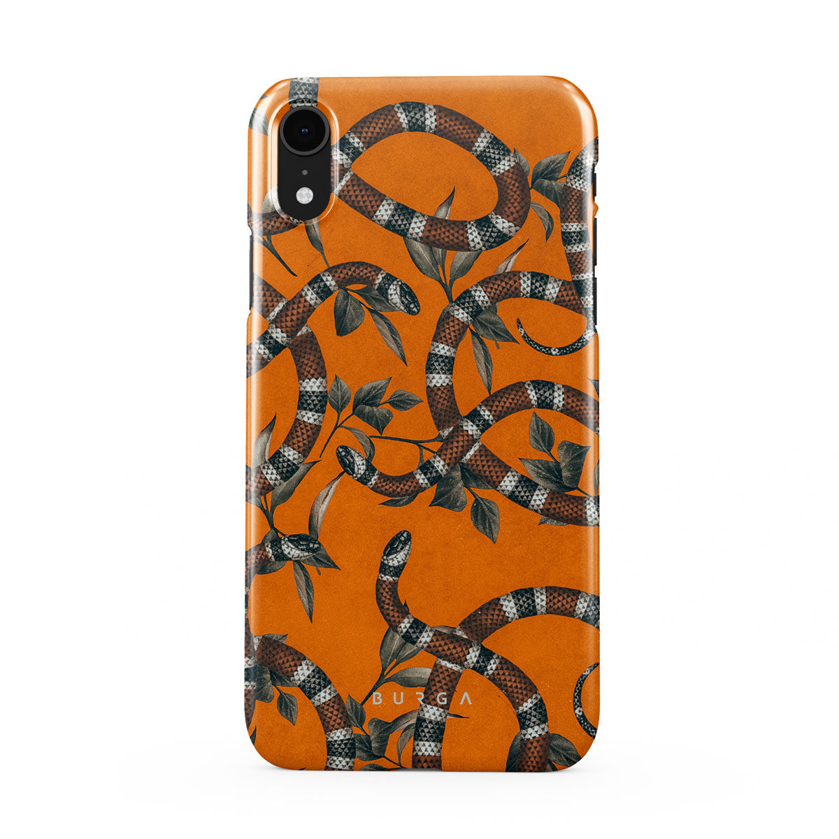 Take a bit of fierceness with yourself with our bright orange and dangerously beautiful iPhone XR phone case with a snake pattern. This case is real eye candy for fashion lovers and just as needed for those who strive to keep their phones protected.