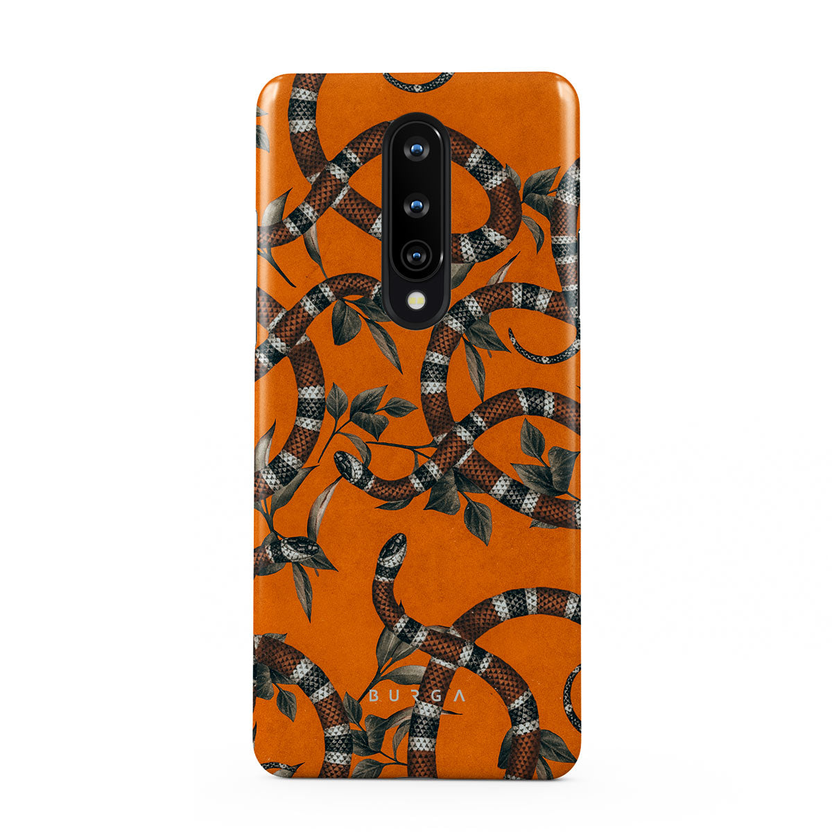 Take a bit of fierceness with yourself with our bright orange and dangerously beautiful OnePlus 8 phone case with a snake pattern. This case is real eye candy for fashion lovers and just as needed for those who strive to keep their phones protected.