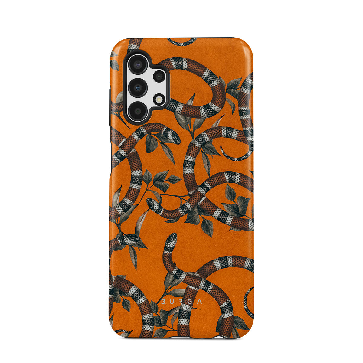 Take a bit of fierceness with yourself with our bright orange and dangerously beautiful Samsung Galaxy A13 4G phone case with a snake pattern. This case is real eye candy for fashion lovers and just as needed for those who strive to keep their phones protected.