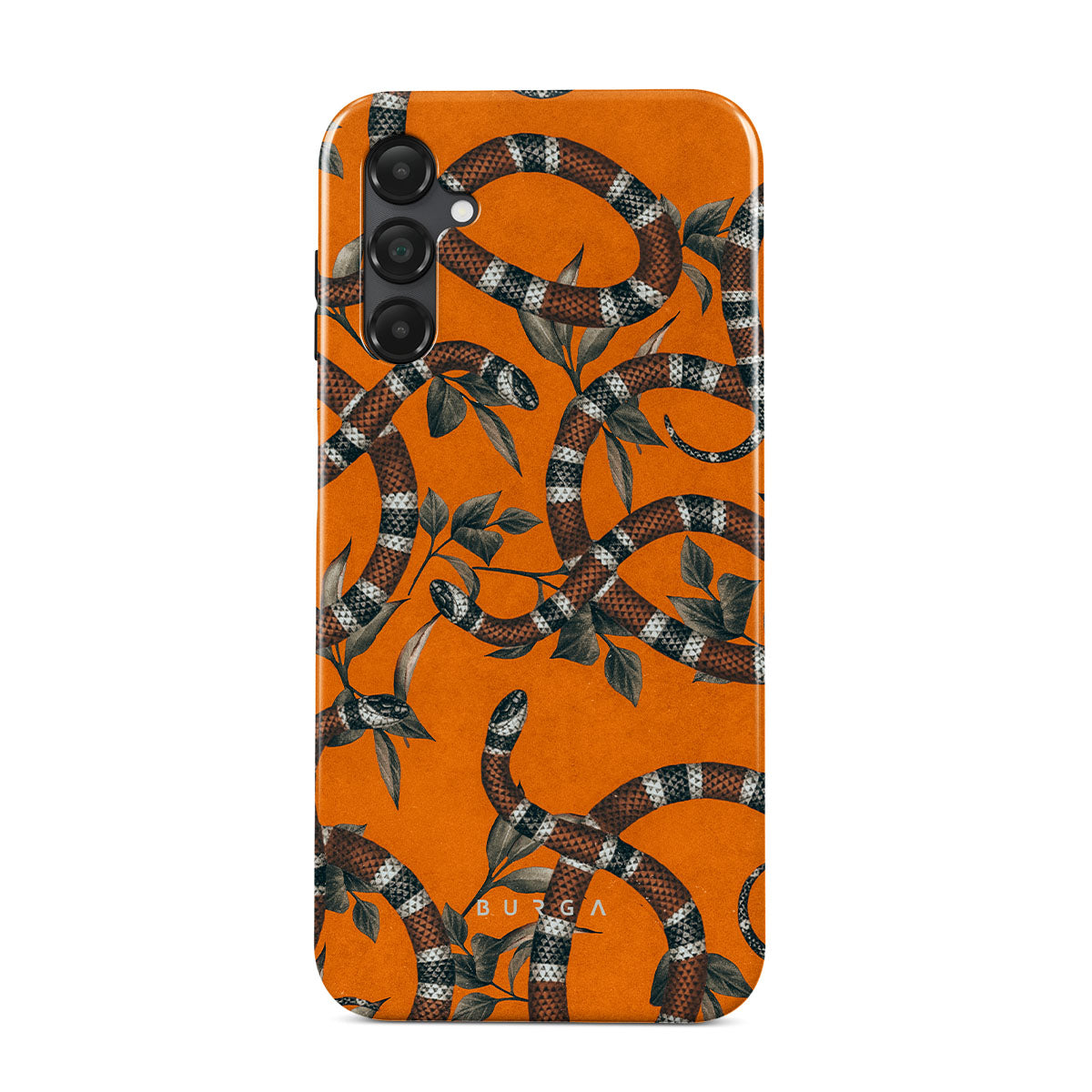 Take a bit of fierceness with yourself with our bright orange and dangerously beautiful Samsung Galaxy A14 5G phone case with a snake pattern. This case is real eye candy for fashion lovers and just as needed for those who strive to keep their phones protected.