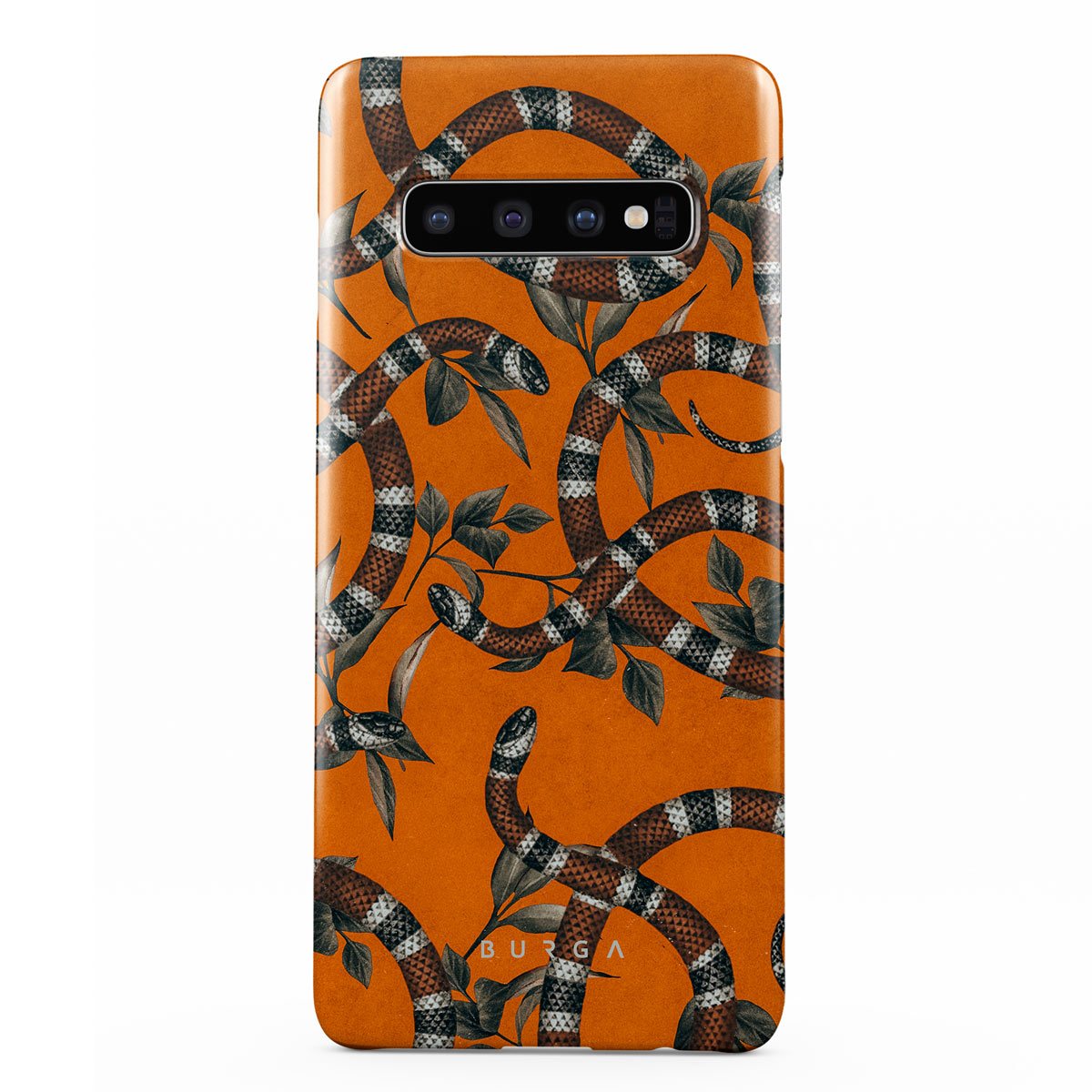 Take a bit of fierceness with yourself with our bright orange and dangerously beautiful Samsung Galaxy S10 Plus phone case with a snake pattern. This case is real eye candy for fashion lovers and just as needed for those who strive to keep their phones protected.