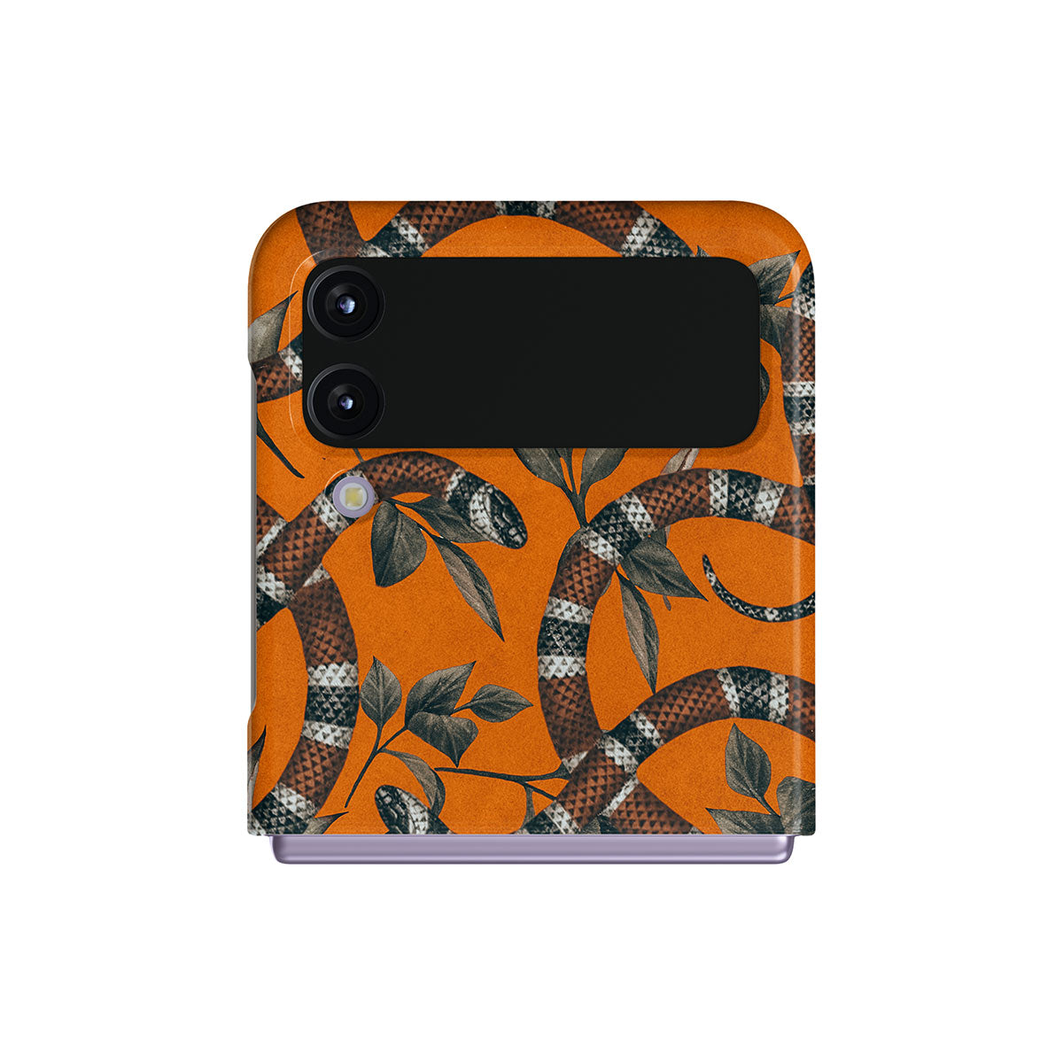 Take a bit of fierceness with yourself with our bright orange and dangerously beautiful Samsung Galaxy Z Flip 4 phone case with a snake pattern. This case is real eye candy for fashion lovers and just as needed for those who strive to keep their phones protected.