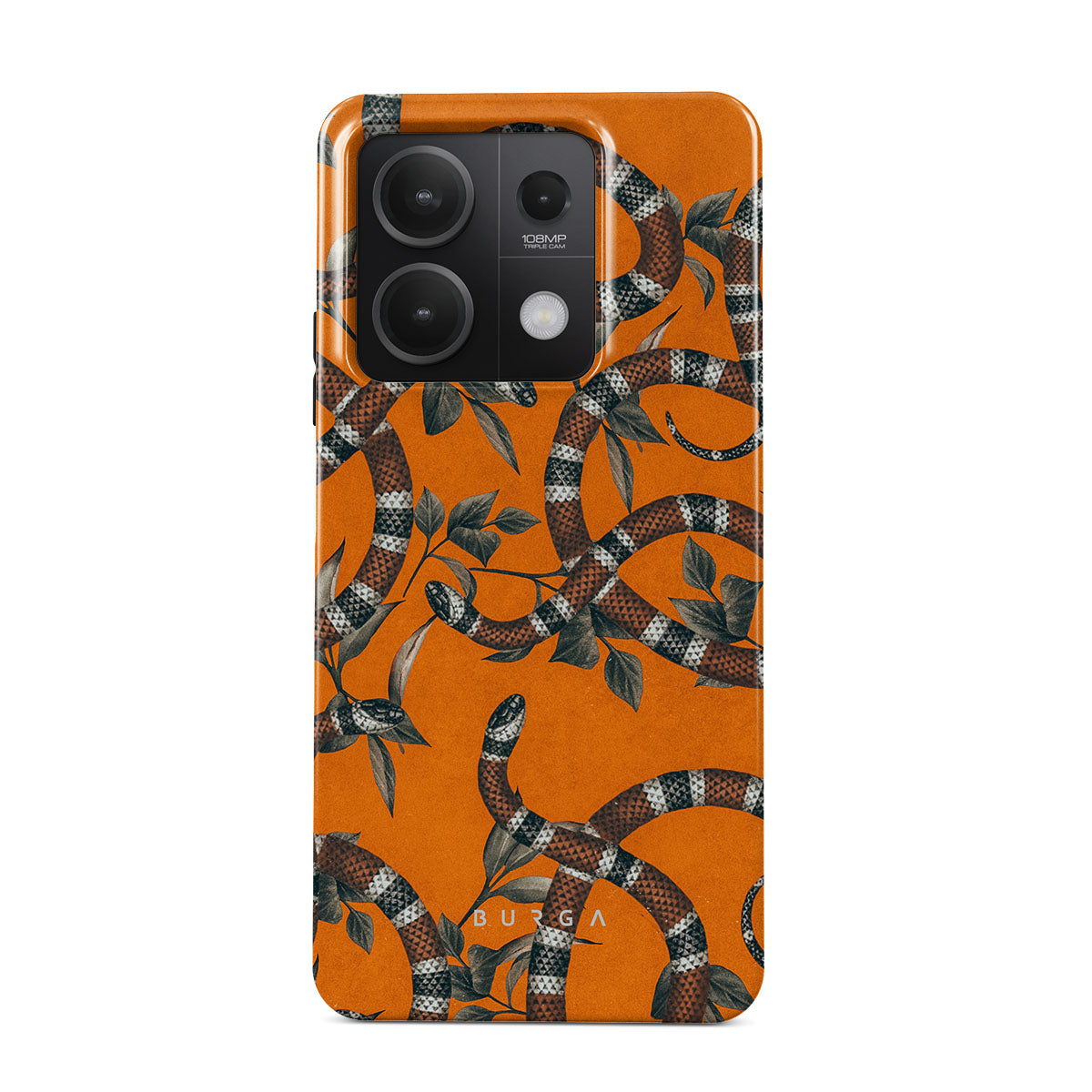 Take a bit of fierceness with yourself with our bright orange and dangerously beautiful Xiaomi Redmi Note 13 5G phone case with a snake pattern. This case is real eye candy for fashion lovers and just as needed for those who strive to keep their phones protected.