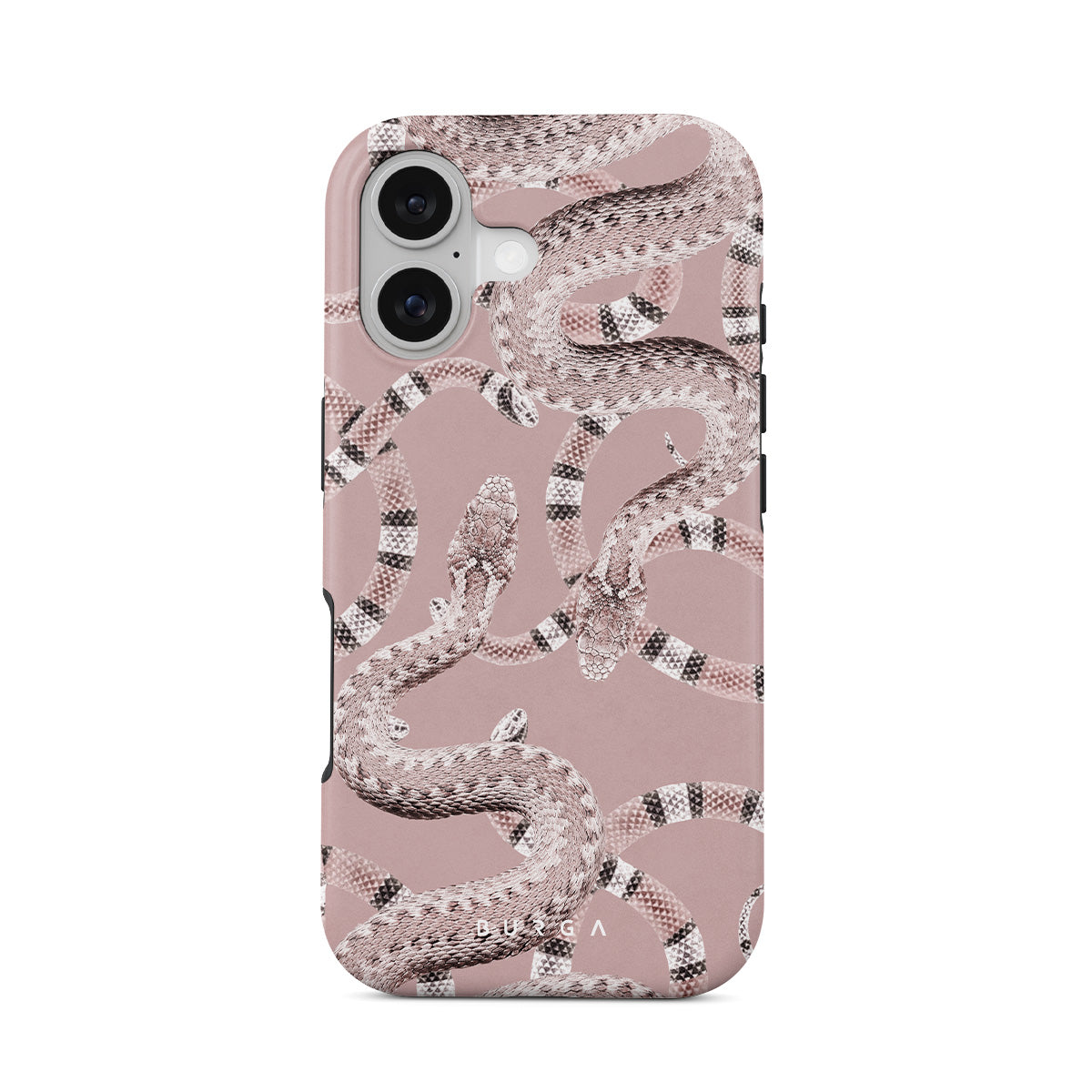Bring the fierceness with our Poolside Glam iPhone 17 phone case. With the pastel pink case featuring snakes, let everyone know that you can always stand for yourself no matter your kind nature. Make a statement and protect your phone at the same time.