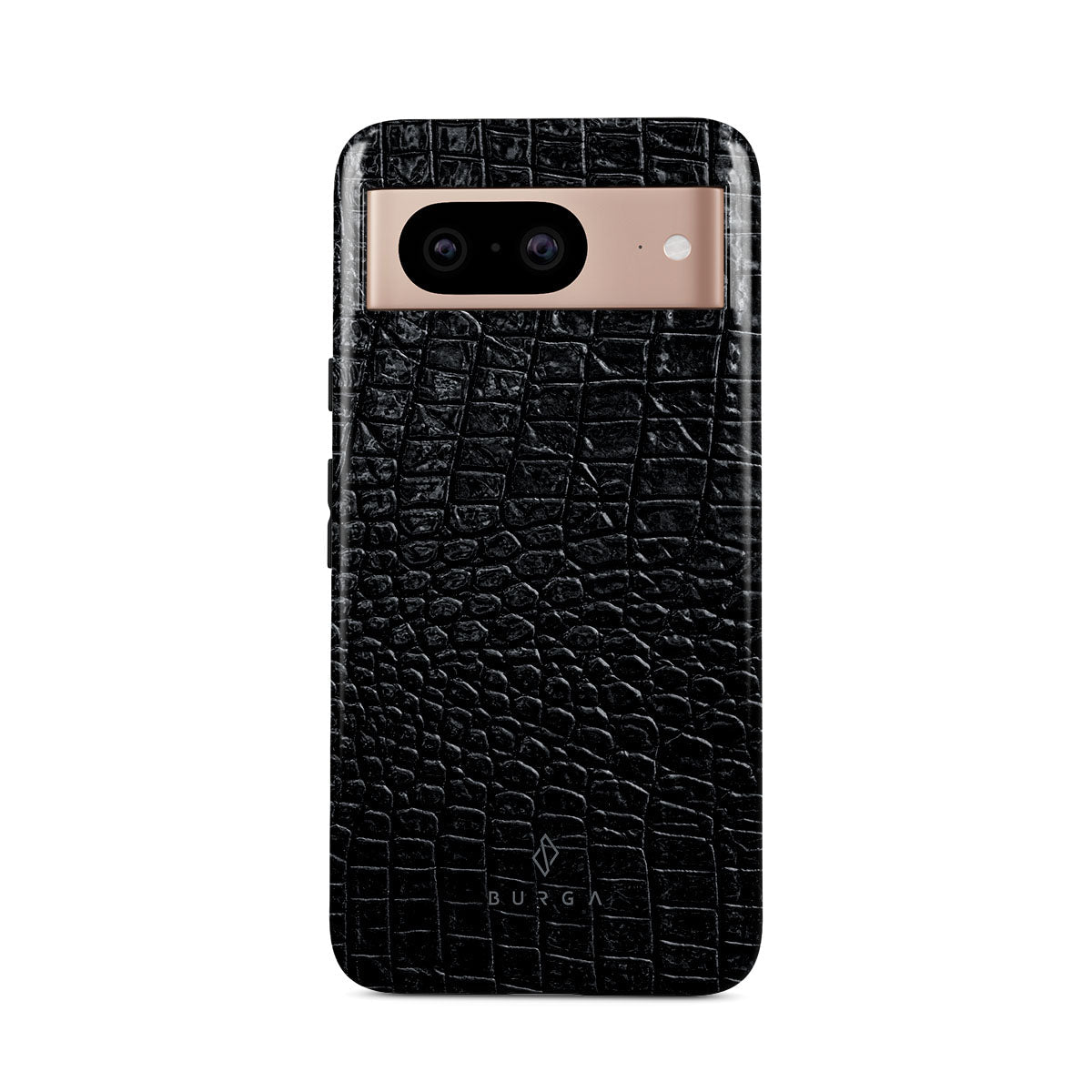 Our Reaper's Touch Google Pixel 8 phone case cover features a classic snakeskin design in dark black. The dangerous animal print will add confidence and a touch of luxury to your style while transforming your phone into a fashion accessory.