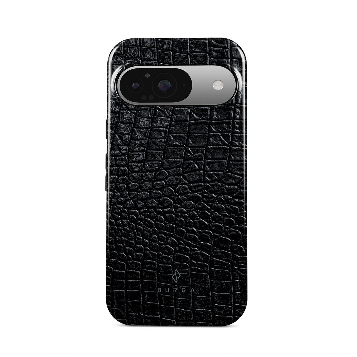 Our Reaper's Touch Google Pixel 9 phone case cover features a classic snakeskin design in dark black. The dangerous animal print will add confidence and a touch of luxury to your style while transforming your phone into a fashion accessory.