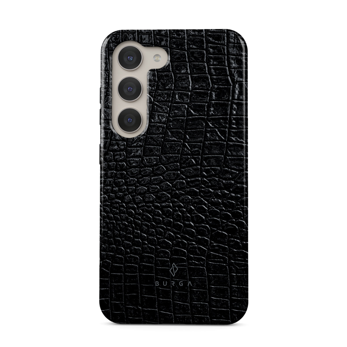 Our Reaper's Touch Samsung Galaxy S23 phone case cover features a classic snakeskin design in dark black. The dangerous animal print will add confidence and a touch of luxury to your style while transforming your phone into a fashion accessory.