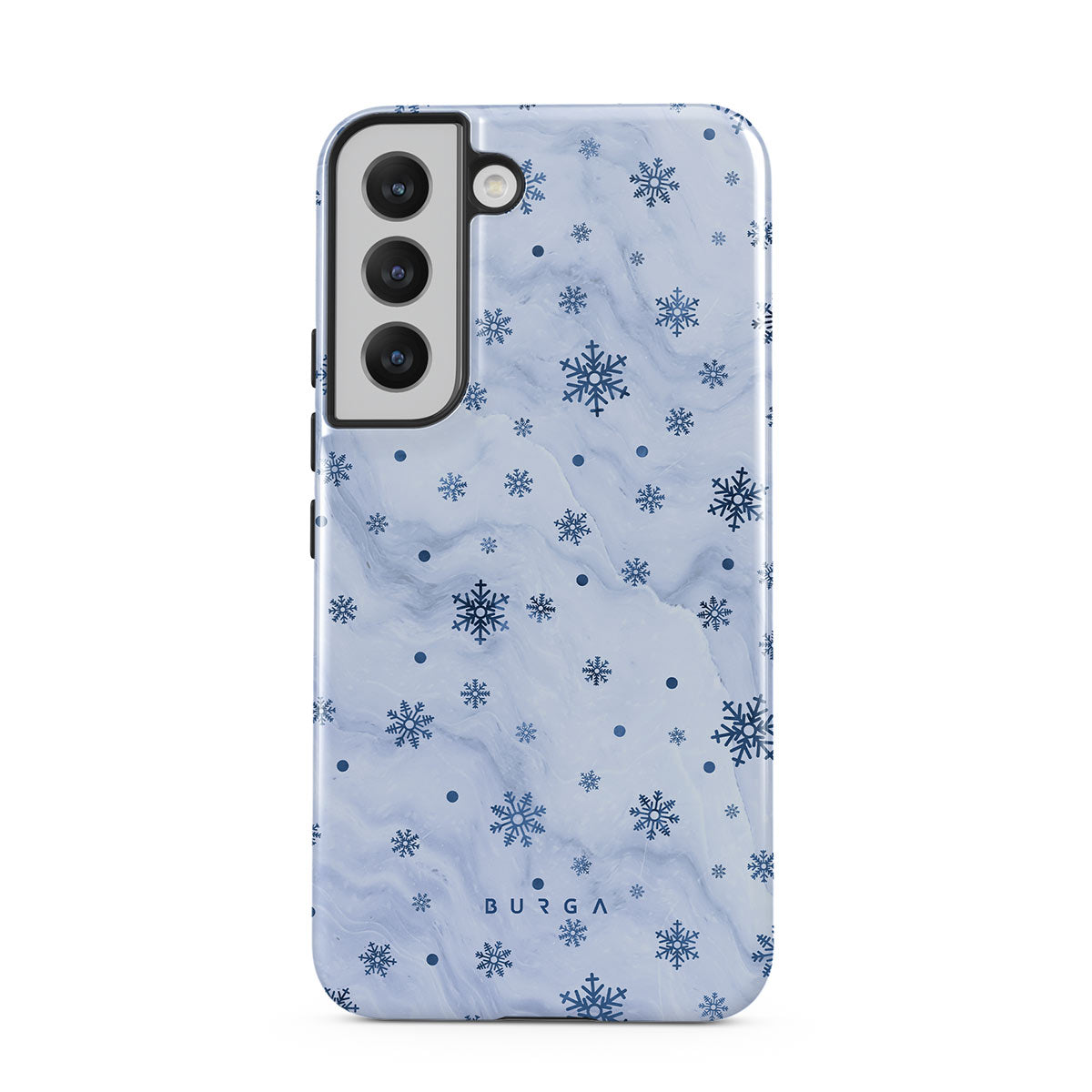 Our Ice Queen Samsung Galaxy S22 Plus phone case combines the softest light blue marble design with a minimalistic snowflake pattern, this way creating the ever-mesmerizing effect of elegant snowflakes dance that only the magical winter days are known for. Keep your device looking elegant while keeping it safe and sound.