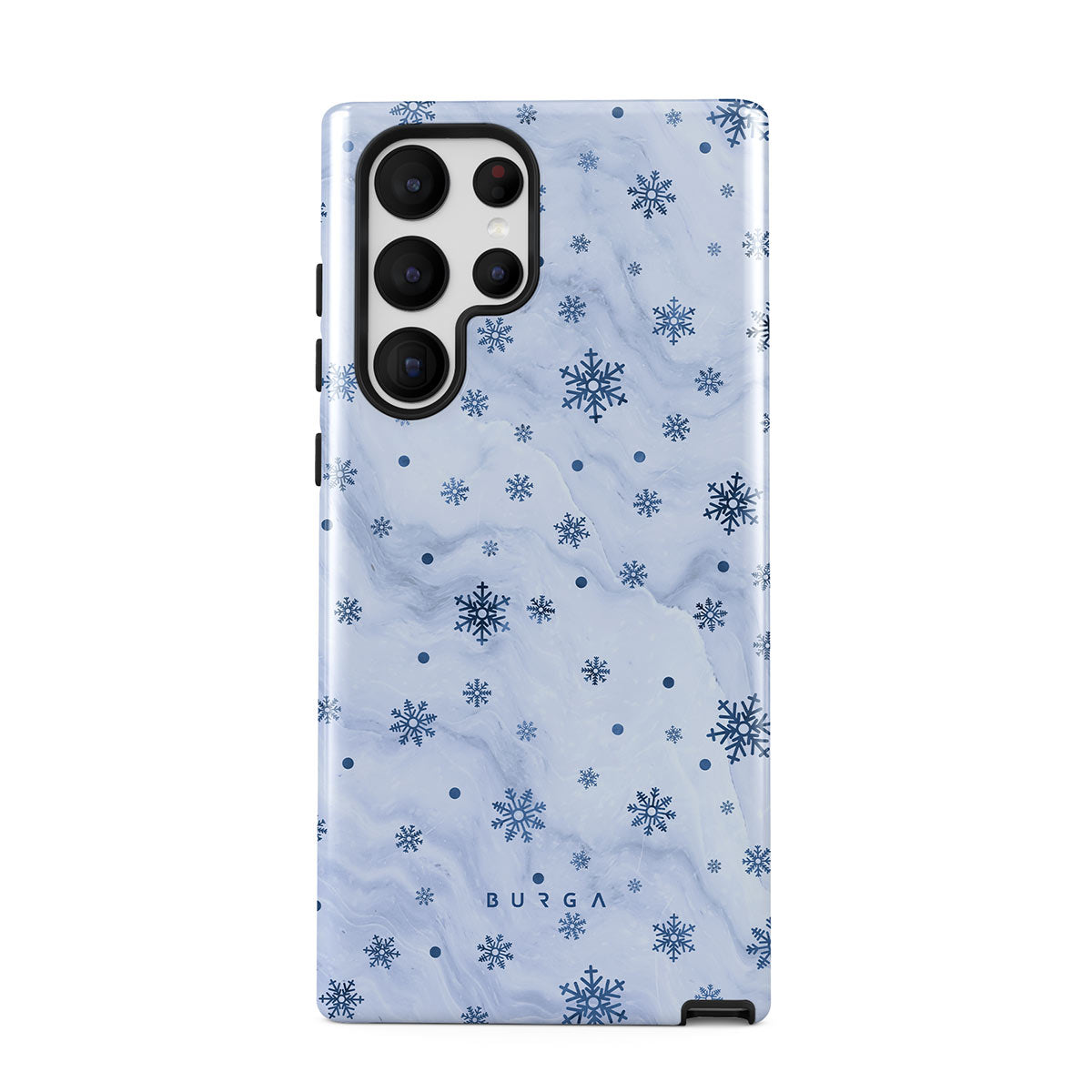 Our Ice Queen Samsung Galaxy S22 Ultra phone case combines the softest light blue marble design with a minimalistic snowflake pattern, this way creating the ever-mesmerizing effect of elegant snowflakes dance that only the magical winter days are known for. Keep your device looking elegant while keeping it safe and sound.