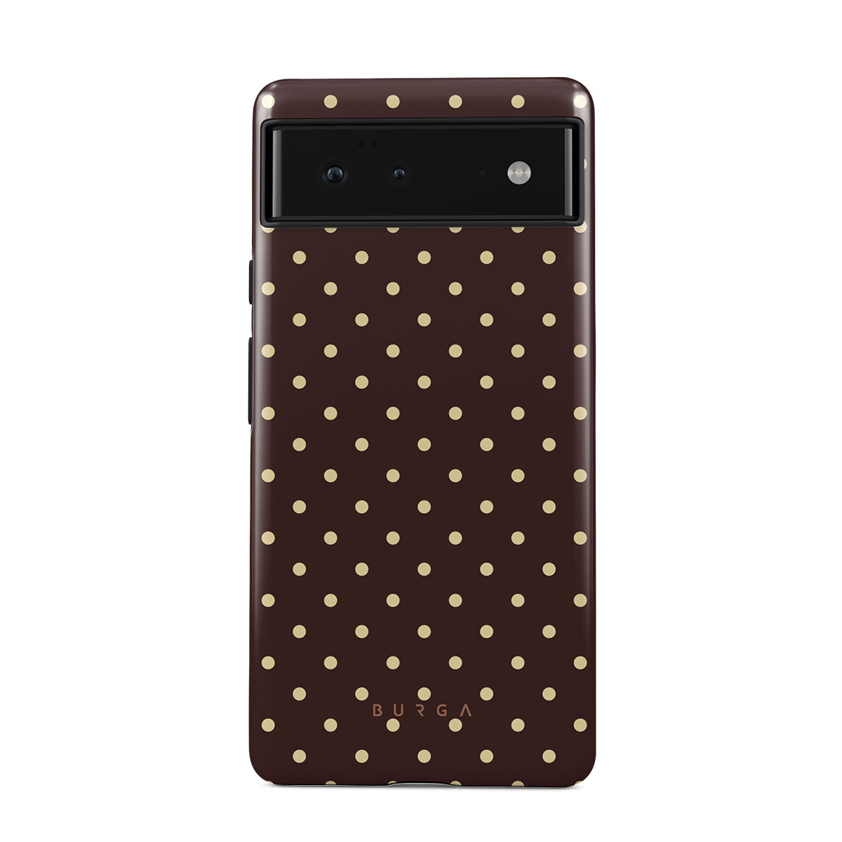 Playful yet polished, our Sorry Busy Google Pixel 6 phone case design features a warm brown background sprinkled with delicate beige polka dots, blending charm with a professional edge. It's for those who keep it stylish, even when fully booked and thriving.