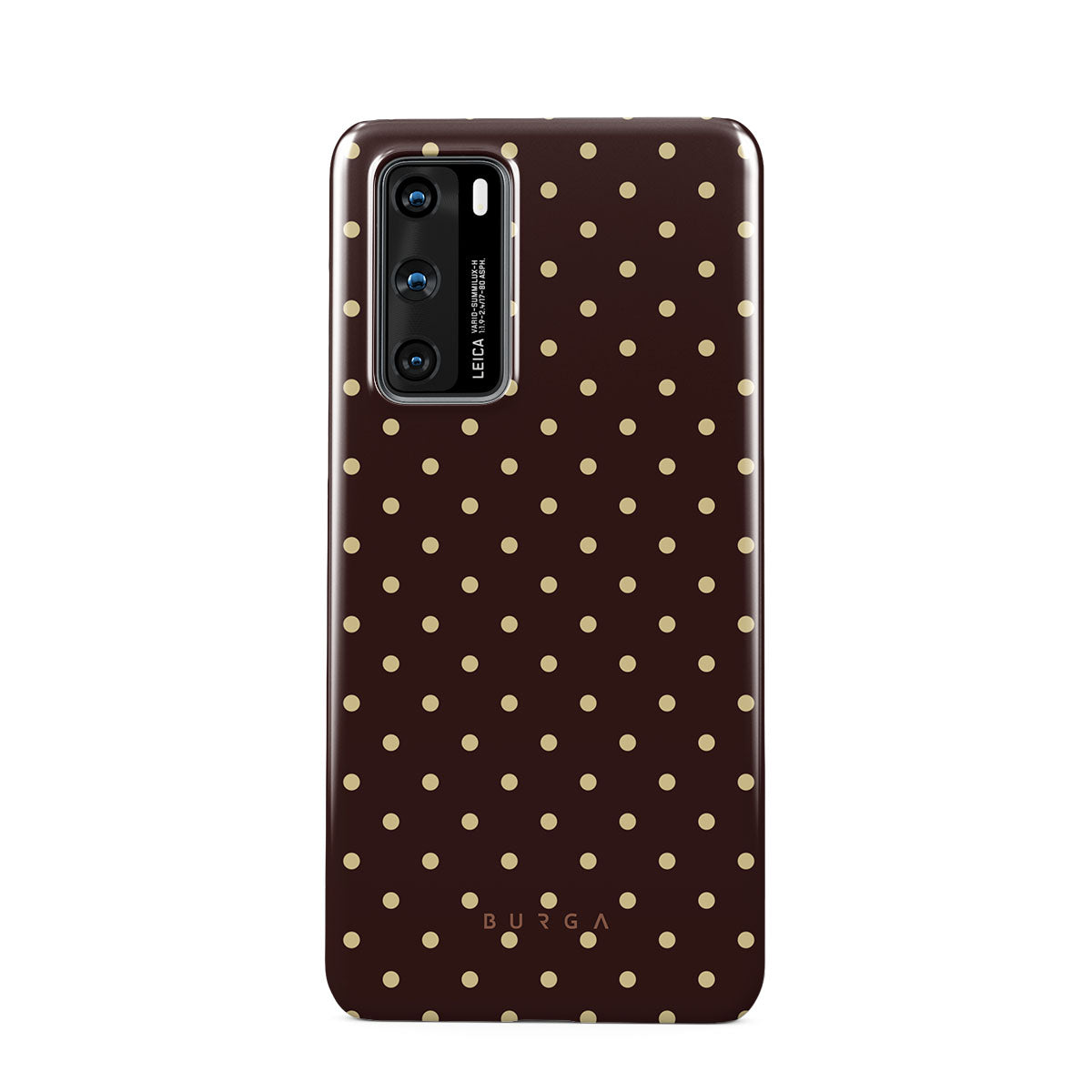 Playful yet polished, our Sorry Busy Huawei P40 phone case design features a warm brown background sprinkled with delicate beige polka dots, blending charm with a professional edge. It's for those who keep it stylish, even when fully booked and thriving.