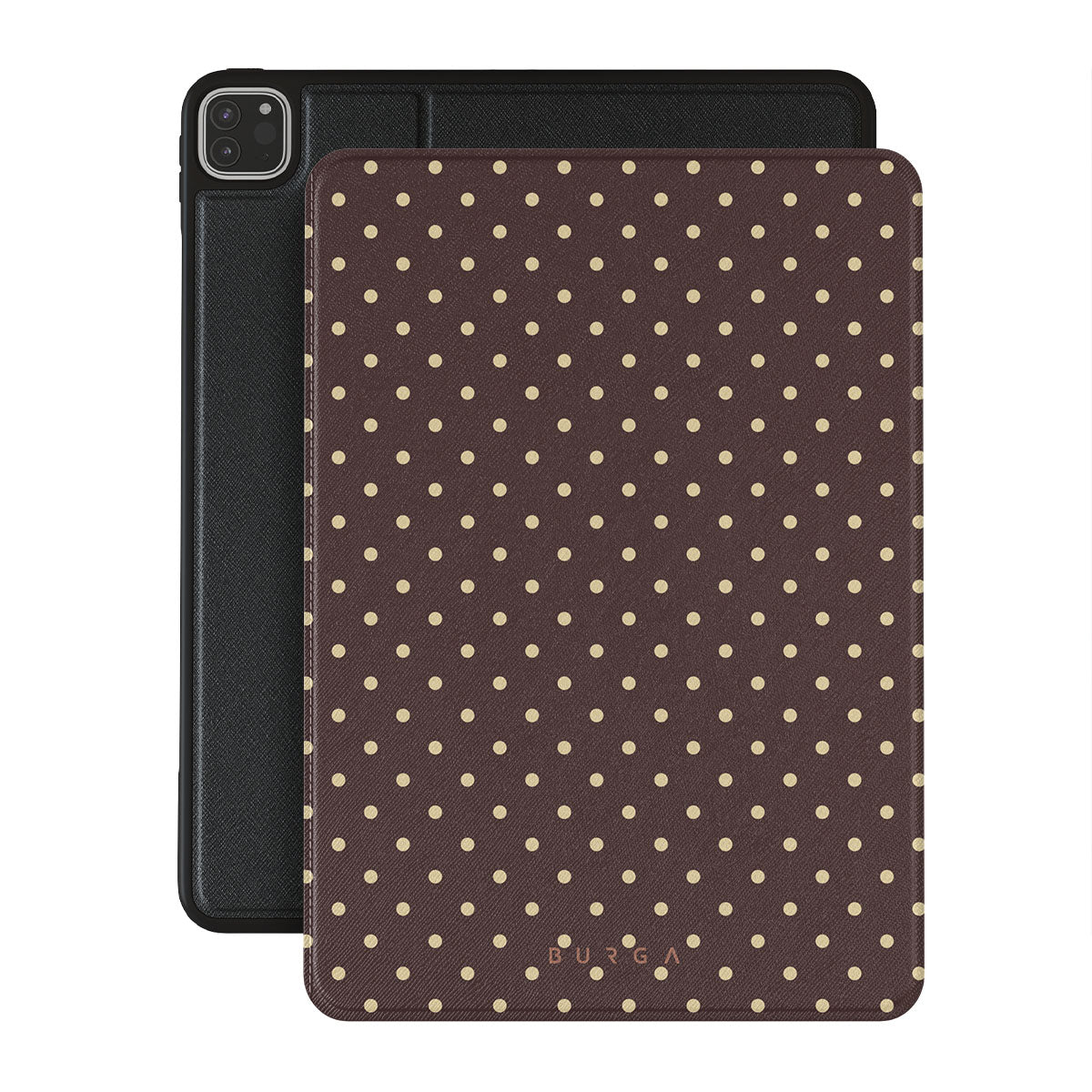 Playful yet polished, our Sorry Busy iPad Pro 12.9 (6th/5th Gen) folio case design features a warm brown background sprinkled with delicate beige polka dots, blending charm with a professional edge. It's for those who keep it stylish, even when fully booked and thriving.