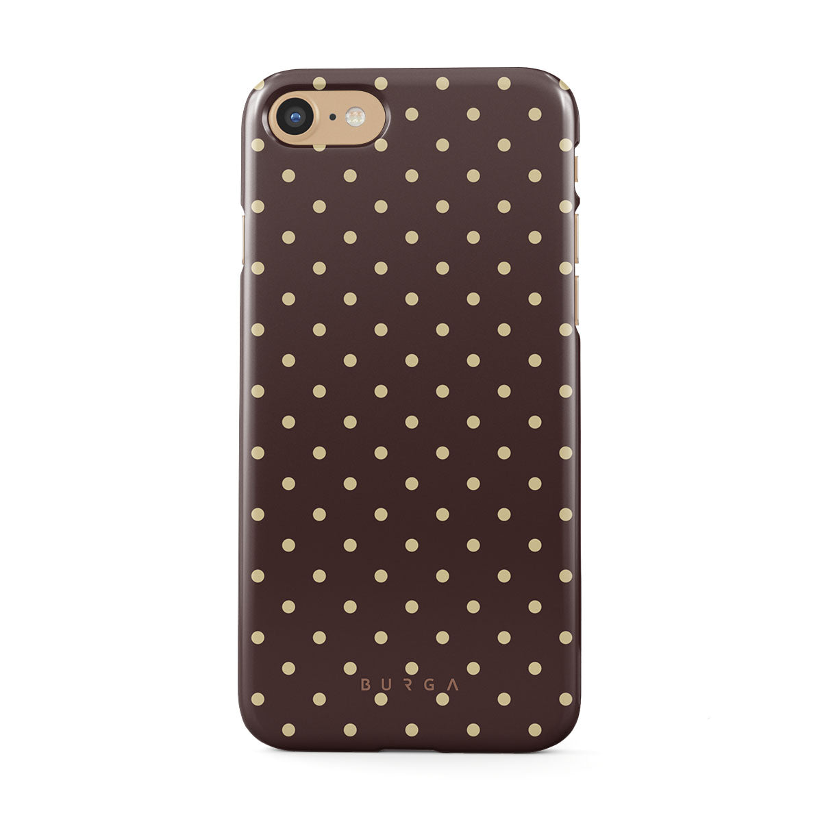 Playful yet polished, our Sorry Busy iPhone SE (2020) phone case design features a warm brown background sprinkled with delicate beige polka dots, blending charm with a professional edge. It's for those who keep it stylish, even when fully booked and thriving.