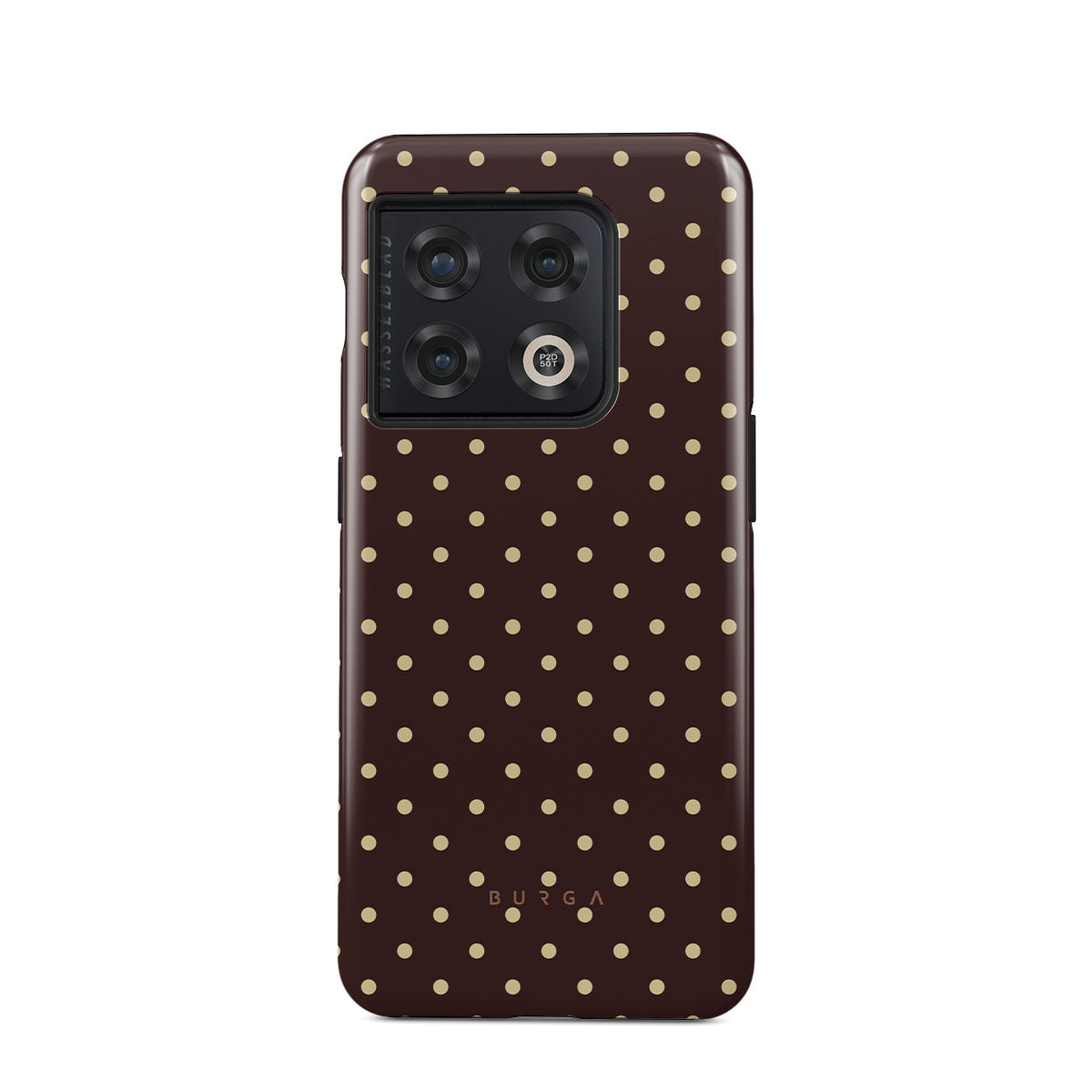 Playful yet polished, our Sorry Busy OnePlus 10 Pro 5G phone case design features a warm brown background sprinkled with delicate beige polka dots, blending charm with a professional edge. It's for those who keep it stylish, even when fully booked and thriving.