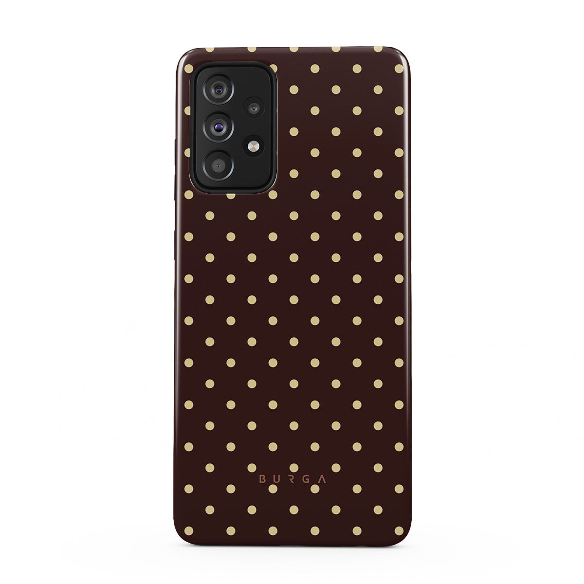 Playful yet polished, our Sorry Busy Samsung Galaxy A52 / A52S 4G / 5G phone case design features a warm brown background sprinkled with delicate beige polka dots, blending charm with a professional edge. It's for those who keep it stylish, even when fully booked and thriving.