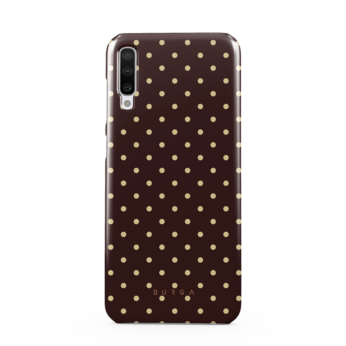 Playful yet polished, our Sorry Busy Samsung Galaxy A70 phone case design features a warm brown background sprinkled with delicate beige polka dots, blending charm with a professional edge. It's for those who keep it stylish, even when fully booked and thriving.