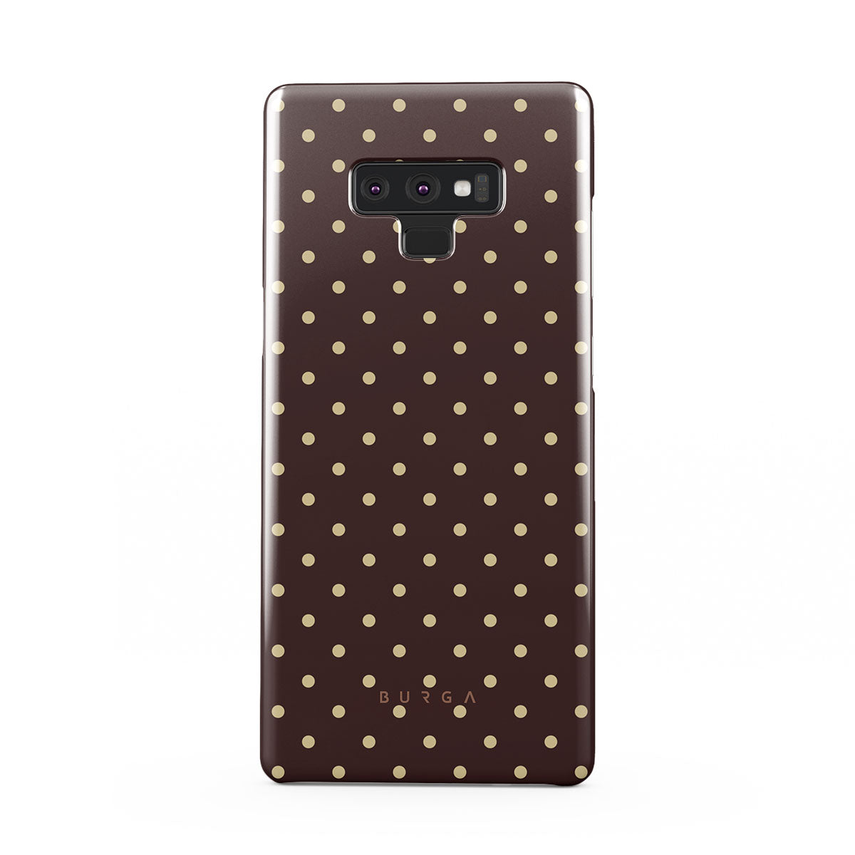 Playful yet polished, our Sorry Busy Samsung Galaxy Note 9 phone case design features a warm brown background sprinkled with delicate beige polka dots, blending charm with a professional edge. It's for those who keep it stylish, even when fully booked and thriving.