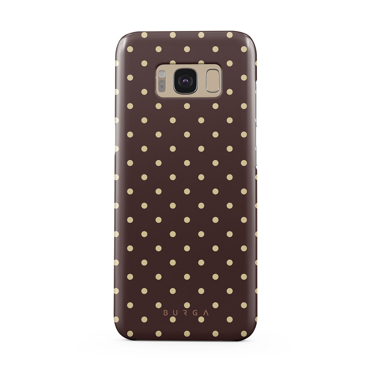 Playful yet polished, our Sorry Busy Samsung Galaxy S8 phone case design features a warm brown background sprinkled with delicate beige polka dots, blending charm with a professional edge. It's for those who keep it stylish, even when fully booked and thriving.
