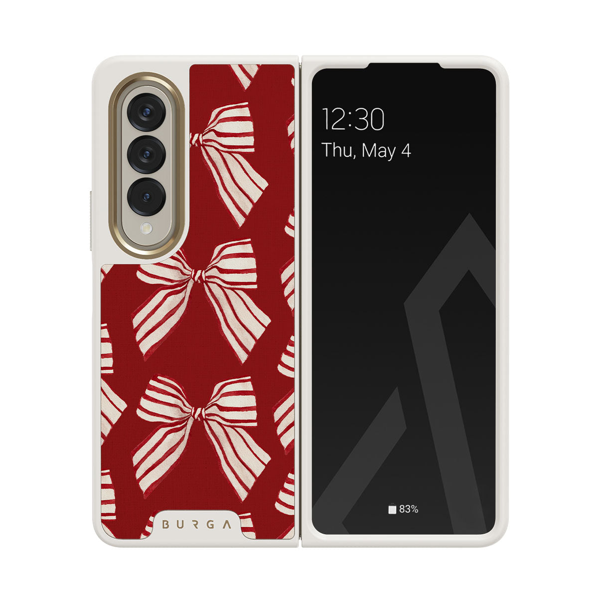 Ribbon-wrapped and ready to go. This Samsung Galaxy Z Fold 4 phone casefeels like the moment right before tearing into the biggest gift under the tree. Our Special Delivery design captures the excitement of unwrapping holiday surprises. Every glance is a reminder that the best gifts are the ones wrapped with love.