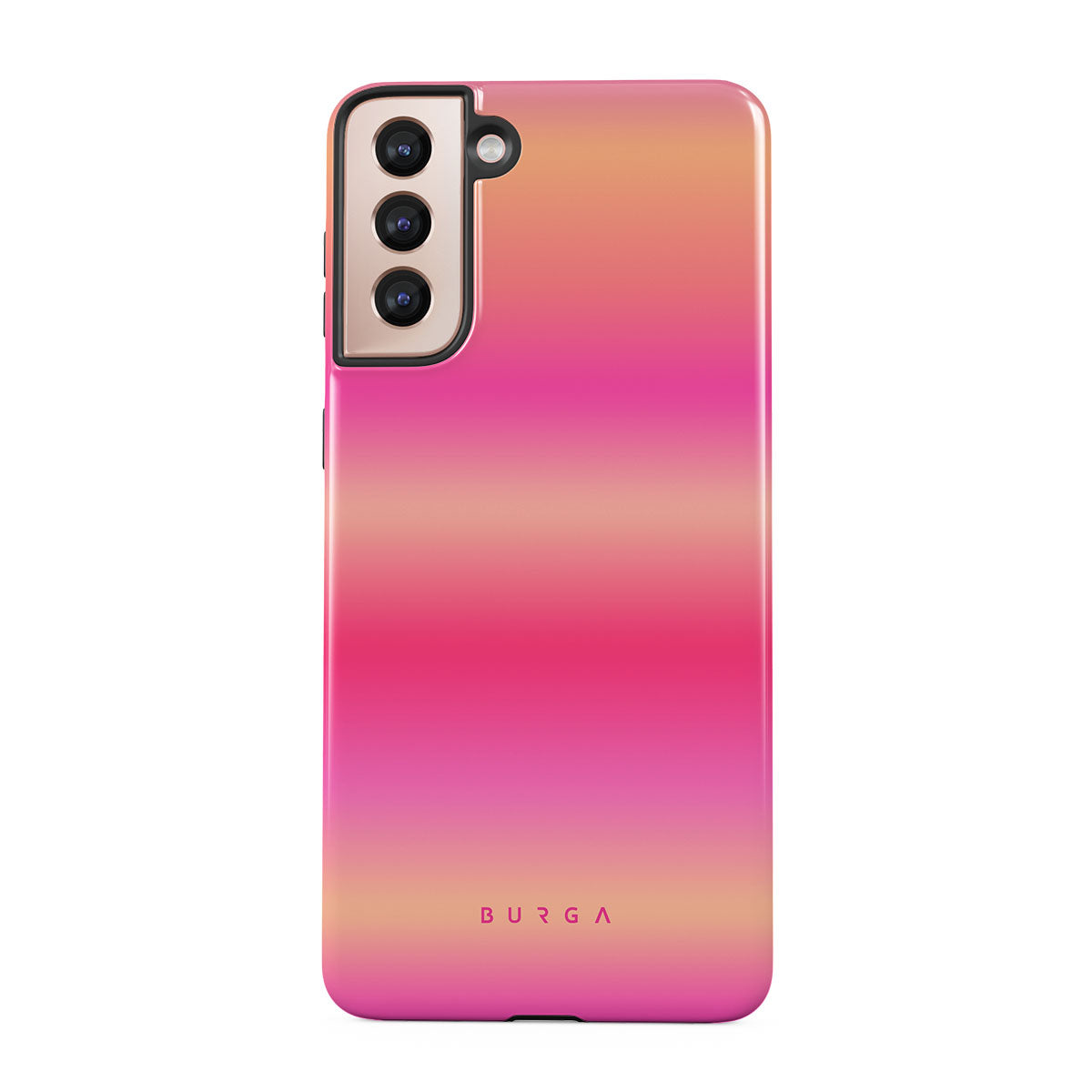 Introducing SPF100—a Samsung Galaxy S21 Plus phone case that's as hot as a summer's day. Featuring a gradient of vivid pinks and warm oranges, this design radiates bold, vibrant energy, reminiscent of sun-kissed skin and tropical getaways.