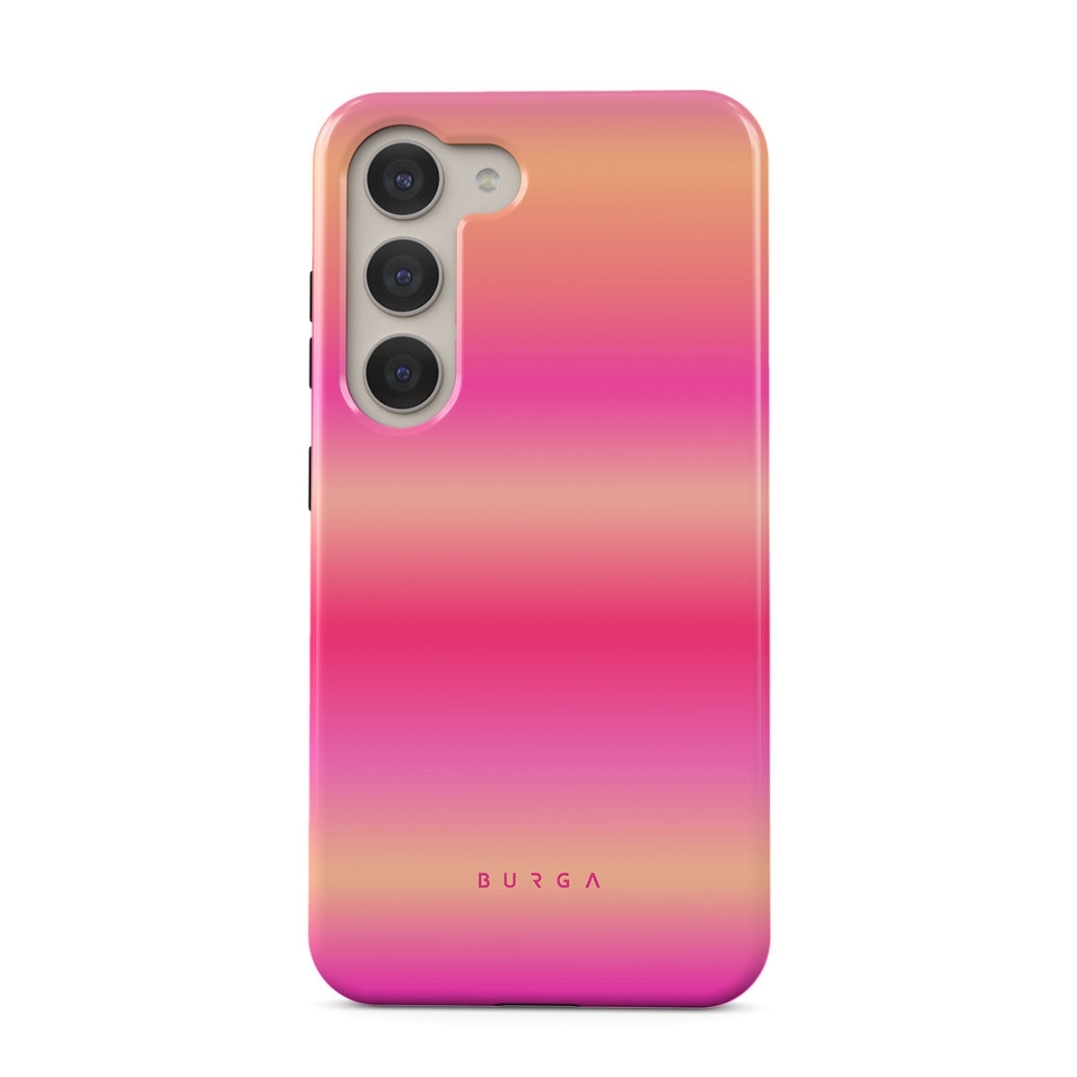 Introducing SPF100—a Samsung Galaxy S23 phone case that's as hot as a summer's day. Featuring a gradient of vivid pinks and warm oranges, this design radiates bold, vibrant energy, reminiscent of sun-kissed skin and tropical getaways.