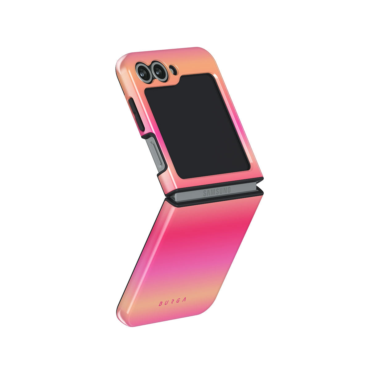 Introducing SPF100—a Samsung Galaxy Z Flip 6 phone case that's as hot as a summer's day. Featuring a gradient of vivid pinks and warm oranges, this design radiates bold, vibrant energy, reminiscent of sun-kissed skin and tropical getaways.